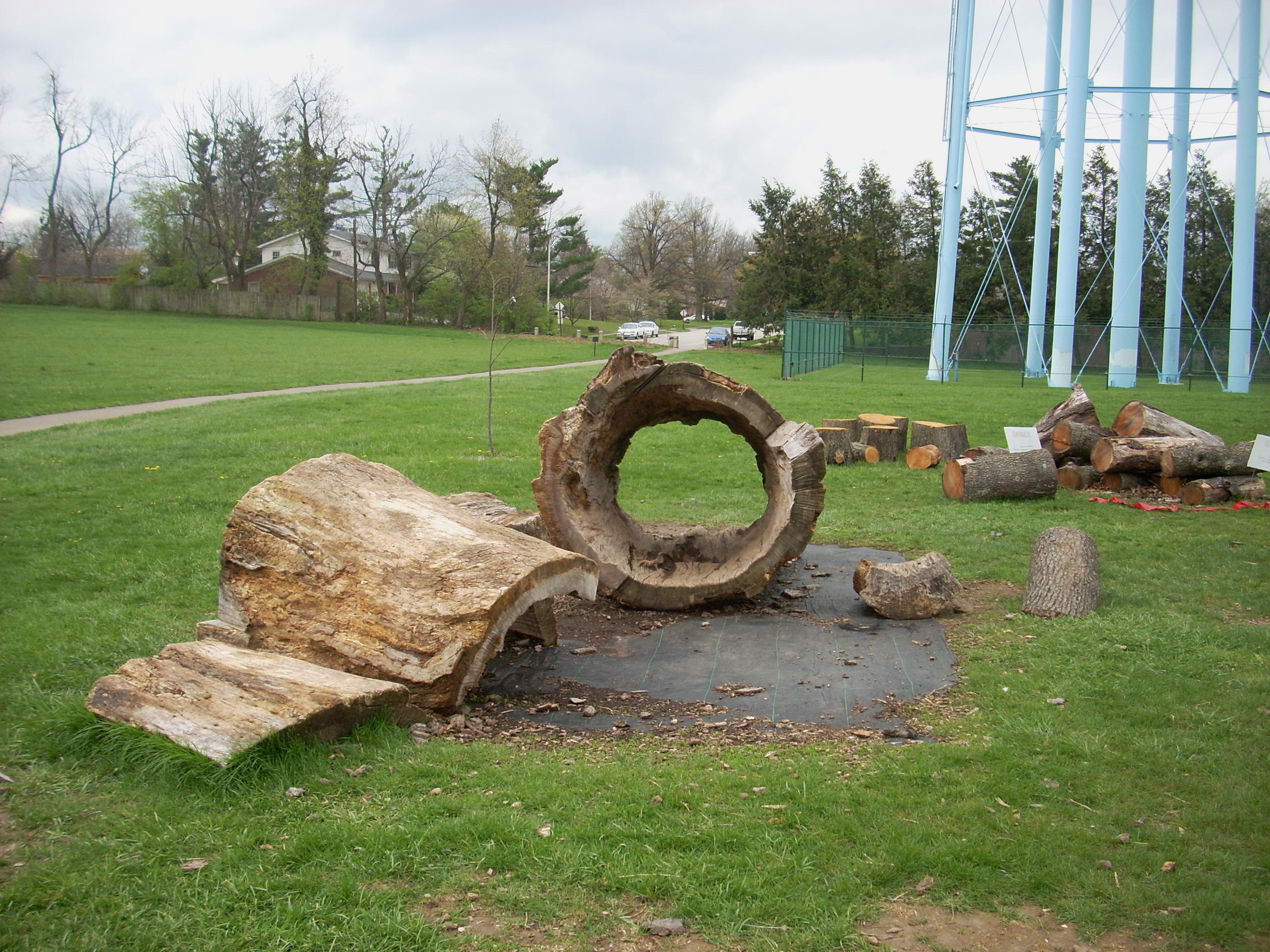 Up next on the right comes the children’s garden that they’re working on, and on the left under the water tower you’ll see some massive, hollowed out tree cuttings. The kids love it here!