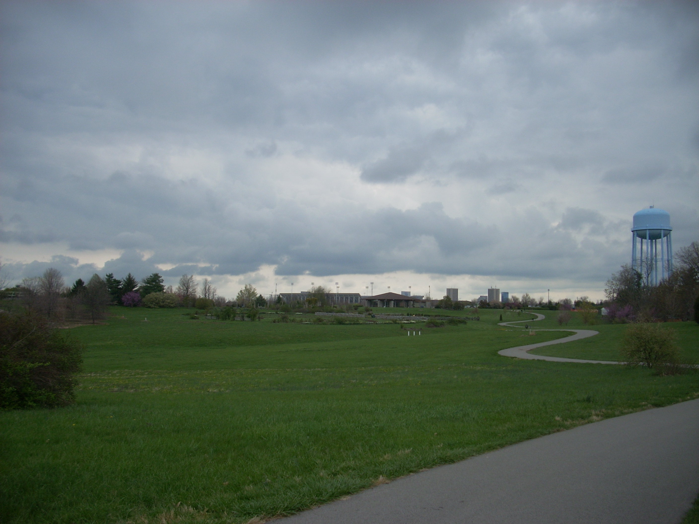 The main path here runs 2 miles as it winds around the perimeter of the park in the shape of -