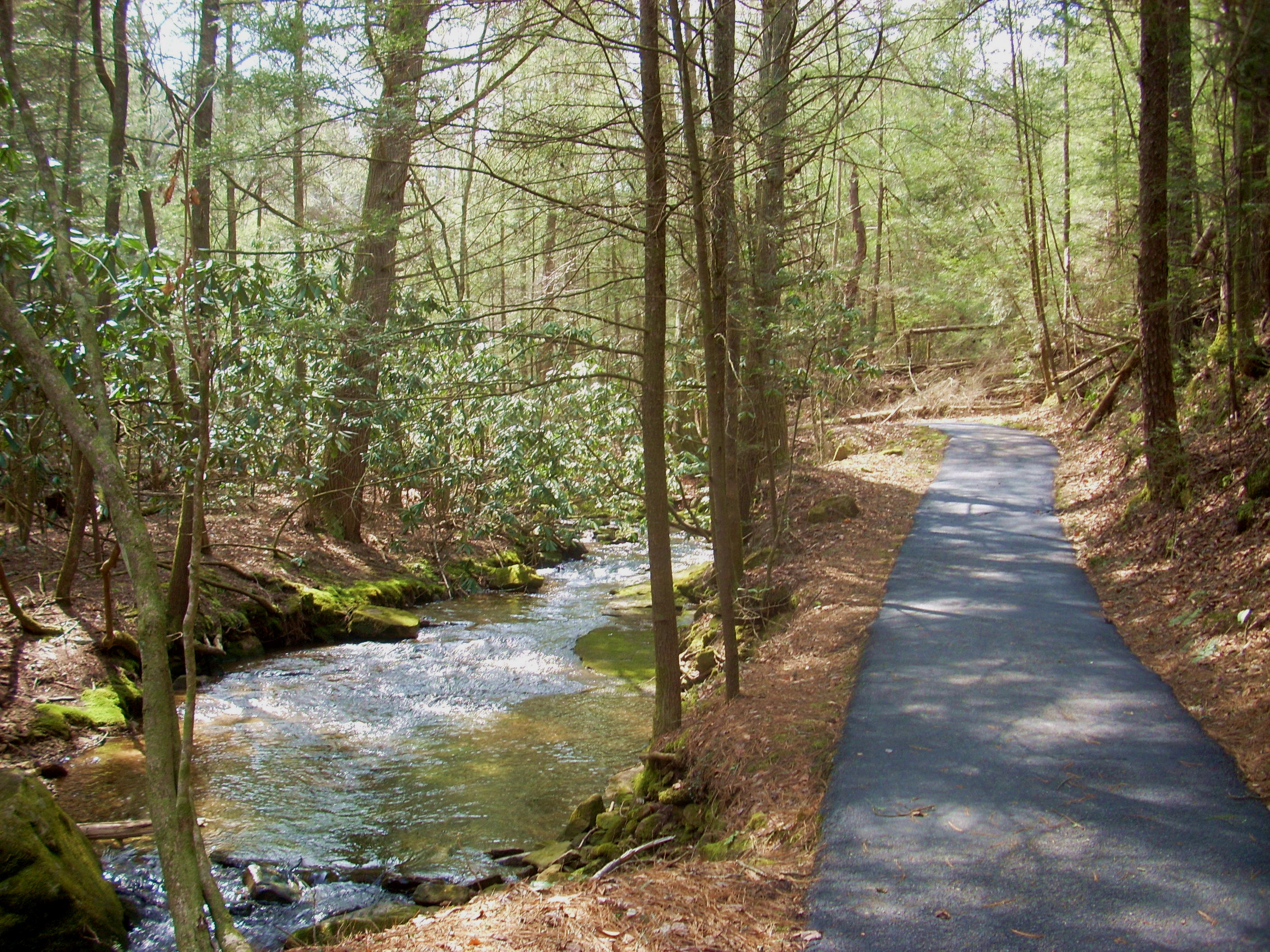 Let me mention first that the Sugar Run area (the location of this trailhead) is a fantastic spot for a picnic lunch! It’s named for the pleasant little creek which runs through here and you can plop right down on one of the many picnic tables they have available right alongside the water and enjoy! There’s also a paved path that meanders along with the stream for a short distance that looks like it would be perfect for people in wheelchairs or for young children…