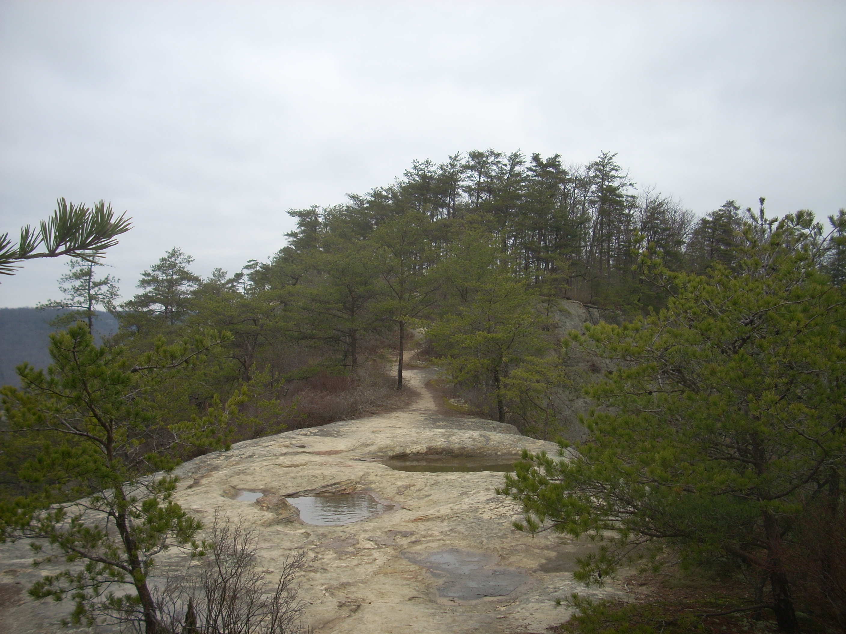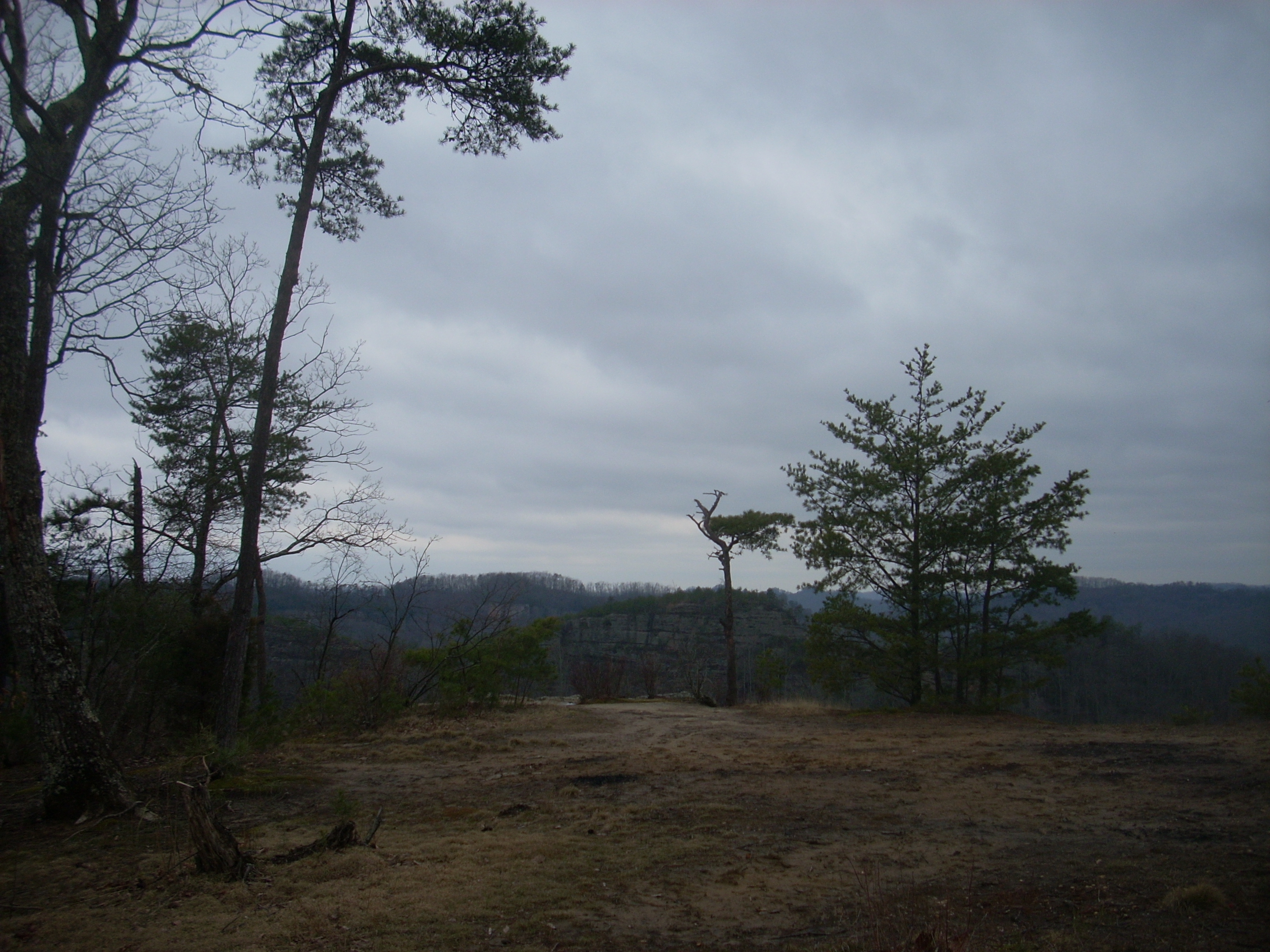 Continuing on atop the ridge, the next sight I met with was absolutely “out of left field” – semi-literally! It actually was a field – a field so large that several 18 wheelers might have been able to park upon it – and as I walked to the edge my eyes met with a view that was simply awe-inspiring. As clear as any of the views out at Berea College Forest (but without the farmhouses) the sights from this particular vista were completely unobstructed for almost 180 degrees. Here you’ll be able to gaze upon the gorge in all its’ glory. The spot reminded me a bit of Pilot Knob.