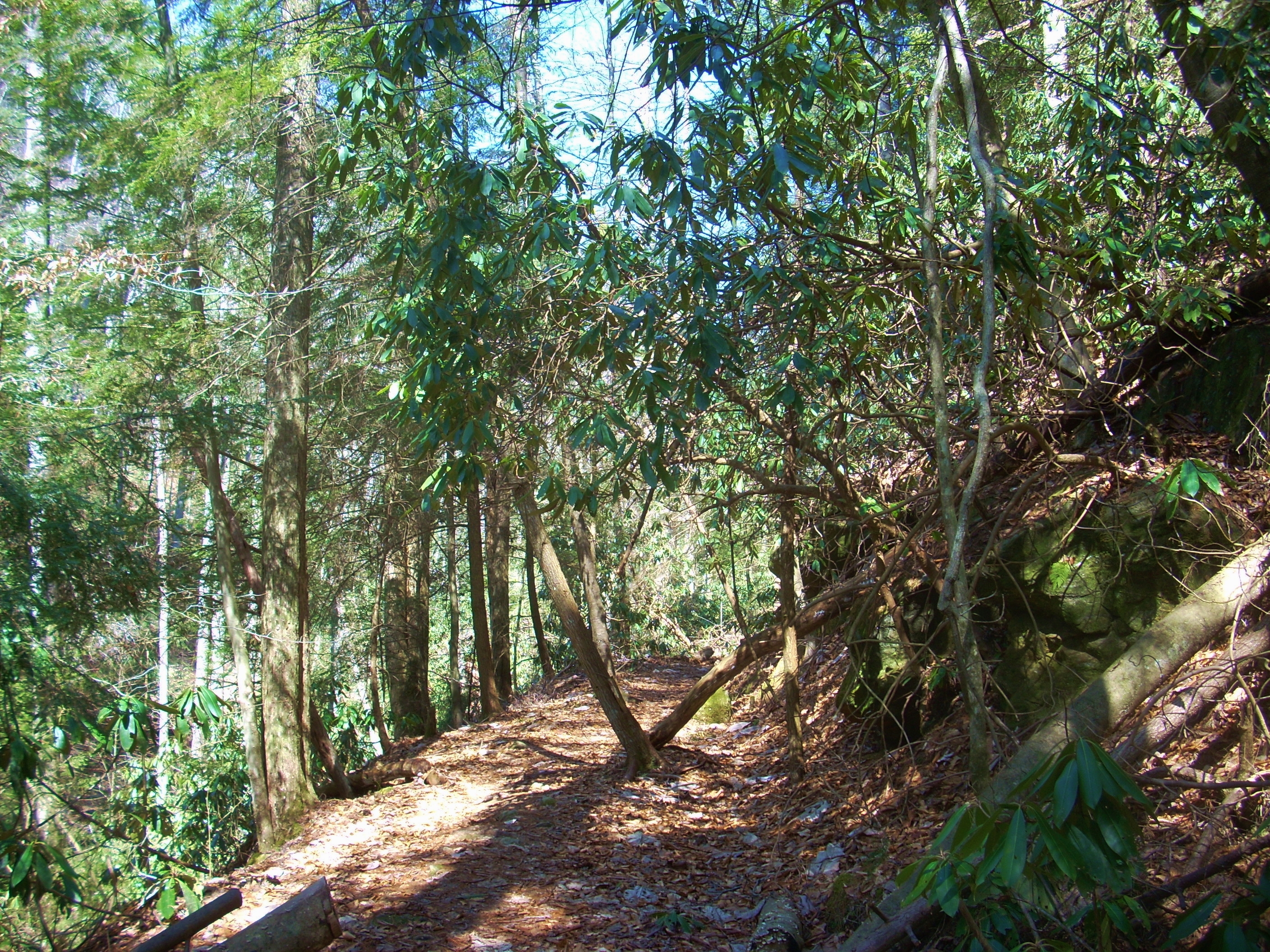 Once you retrace your steps back to the main trail you’ll soon begin to ascend very slowly and gradually through another section of rhododendron/pine forest...