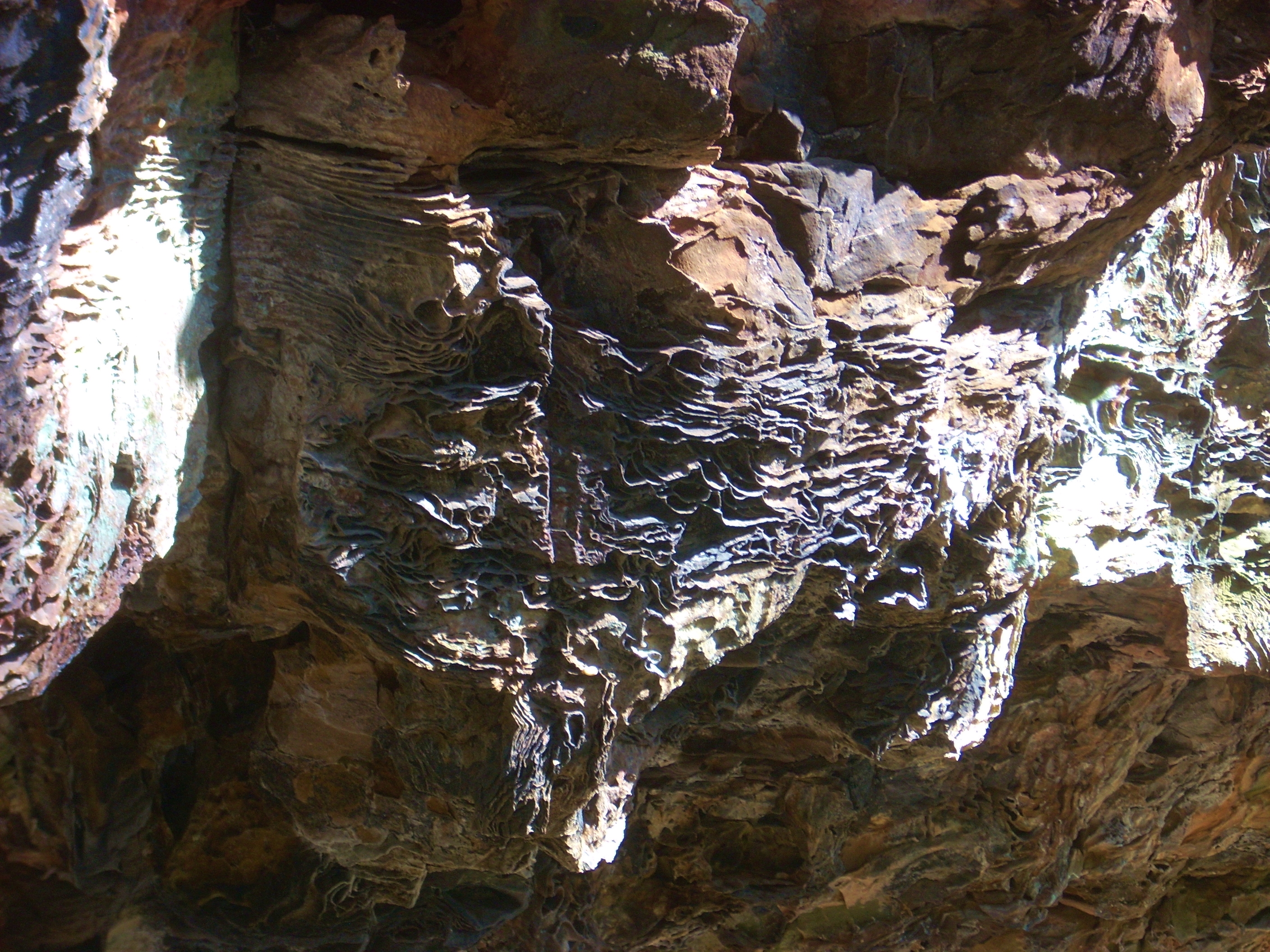 This is a section where you'll see some very interesting patterns in the rock faces and there were even some spots in which it looked like you might be able to do a little spelunking if it were allowed. As I write this, however, caving has largely been banned due to a disease (fungi based) that the bats have gotten. I’d see a notice regarding this later when I reached my turnaround point at the picnic area. It's said that bats can devour as many as 1000 mosquitoes in an hour! I’d sure hate to see the bat population depleted. They’re part of mother natures’ system of checks and balances.