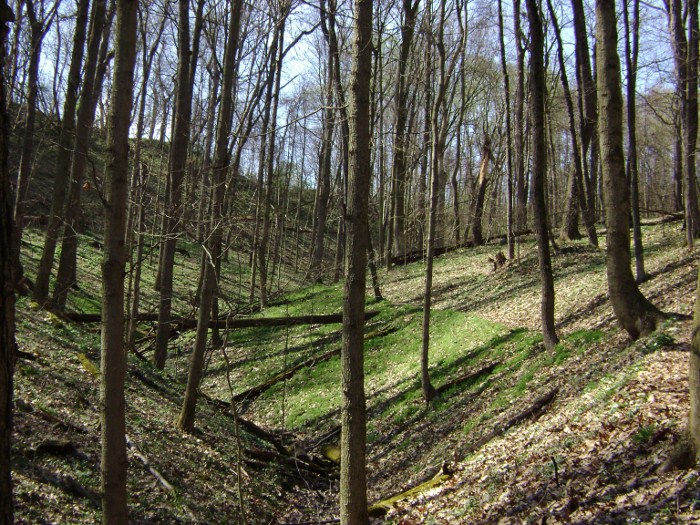 Sooo… I headed back downhill toward the water on a horse path and turned right to link back up with Vondergreen. I later surmised that I was following a path which led up to “Pretty Boy” Floyd area of the park. Floyd was a Depression Era gangster who once held out in this area and was then tracked down and killed. As mentioned, there’s a TON of interesting history out here!
