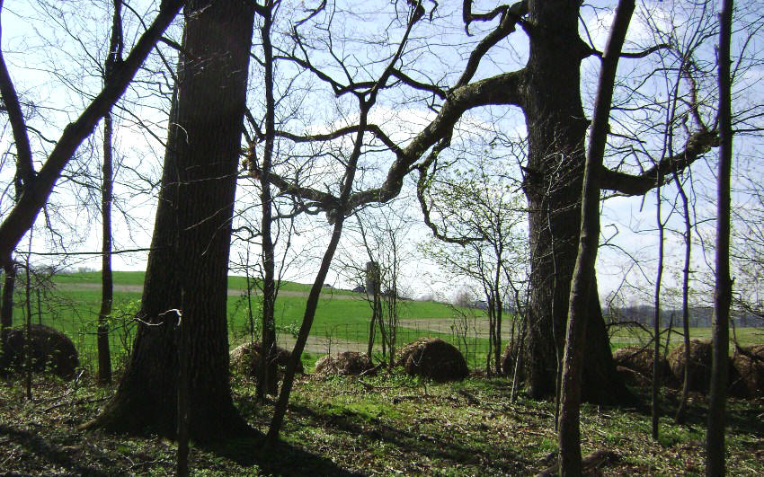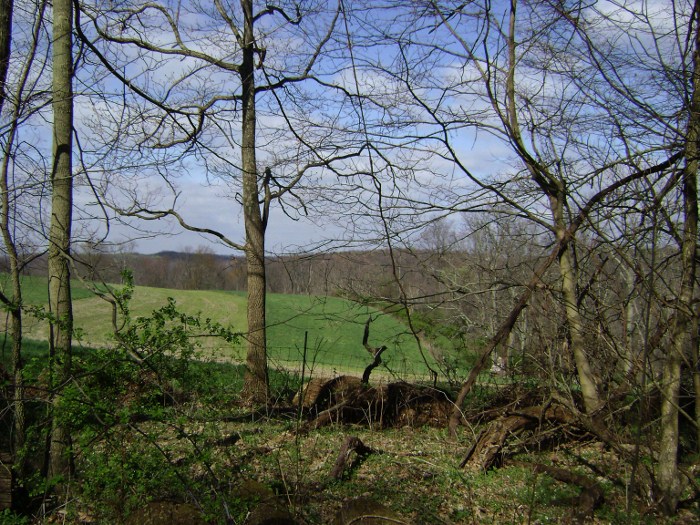Anyway, in crossing the stream you’ll have made a left turn but now the path will straighten for a while to have you gently climbing a ridge in the midst of a wide, wooded section of the path. At one point in here I found that the stream had decided to use a portion of the trail as it's bed! Soon you’ll find yourself veering left. You’re about to make a detour to see one of those farms! Follow the path as it makes another tight left curve and you’ll see the following…