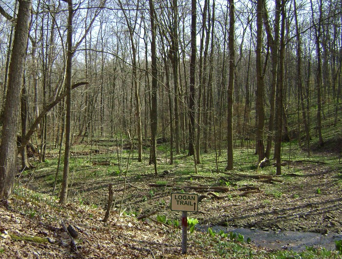 red arrow indicated that a right turn would keep you on the Logan Trail, but
