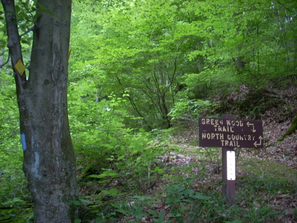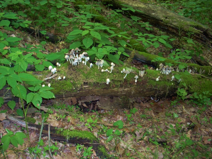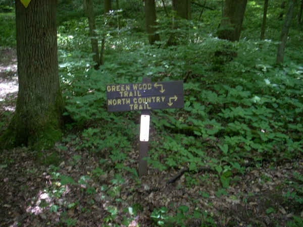 From here you'll follow along the creek for quite a while. It'll stay on your right but later you'll cross it at a point which will coincide with you're meeting the aforementioned North Country Trail (a.k.a. the NCT). I noted a very old stone fence just prior to this point. I couldn't get a good picture through all the foliage that had covered it, but it was a reminder that you're passing through some old homesteads out here! There was also an interesting mushroom colony along a tree here.