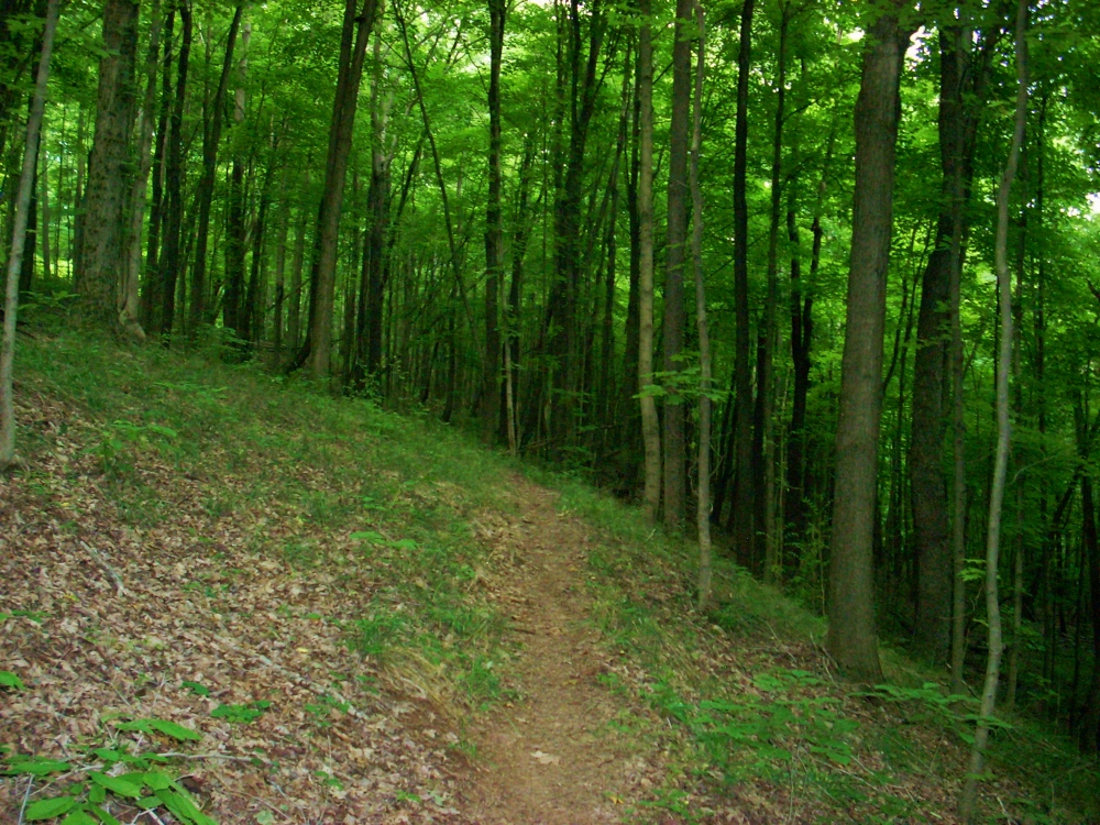 Back to the Green Wood Trail... From the intersection mentioned above you'll head left. This is a fairly level section along the side of a hill which will provide you with some Ohio River views. These are fairly limited with all the foliage but this is still a pretty area.