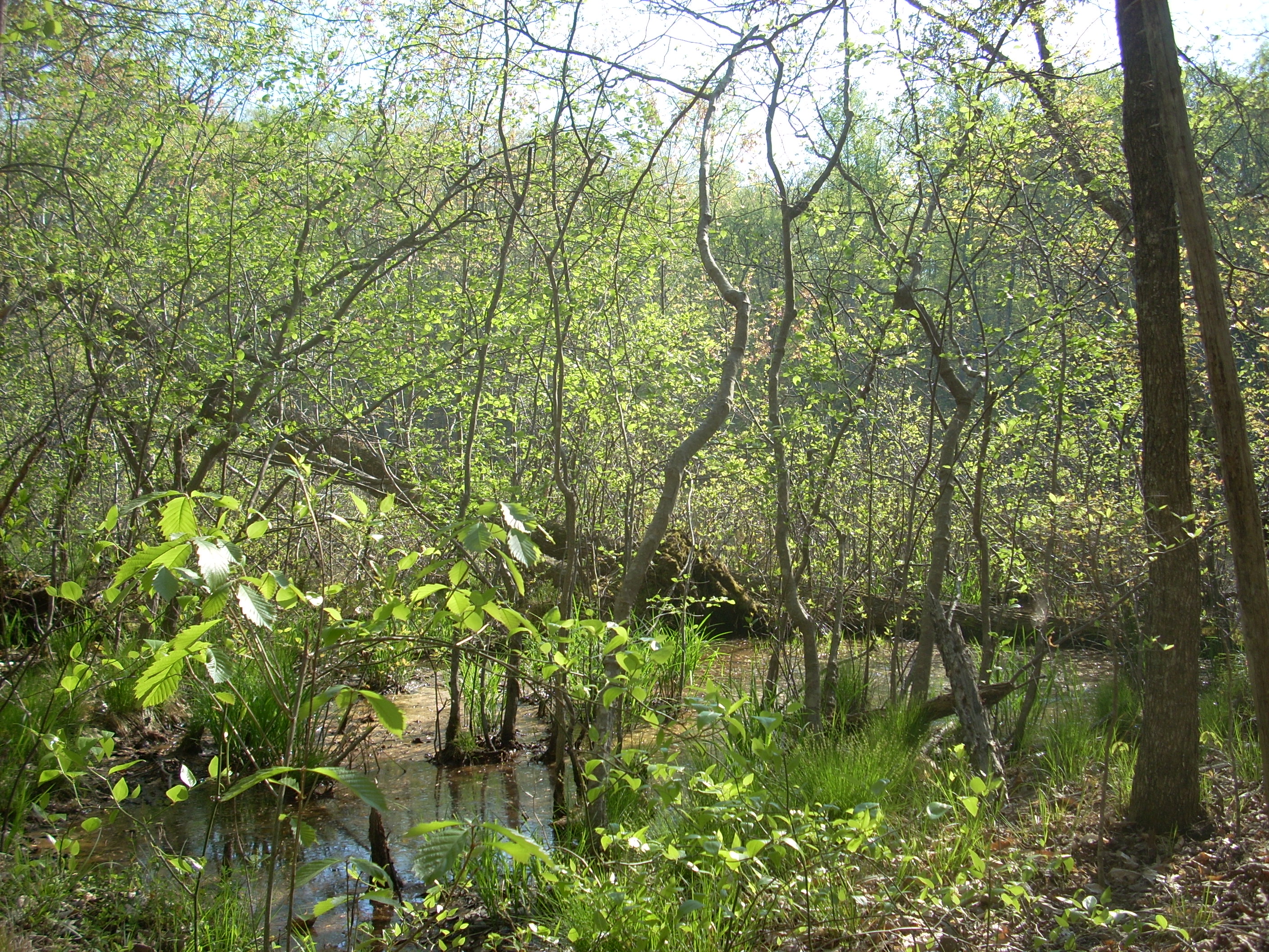 The next section of the trail was a bit odd because I started to notice an area of forest which appeared to have been bulldozed or otherwise cut down. I wondered why… Apparently they’re doing something here, but I’m not sure what. Logging maybe… I walked back into this area a little way, following along a path that looked like an ATV trail but I didn’t reach the end of it. I soon returned to the main trail and crossed over a little stream to reach another marshy area which looked like a fern nursery. It’s likely to be quite lush in here come summertime…