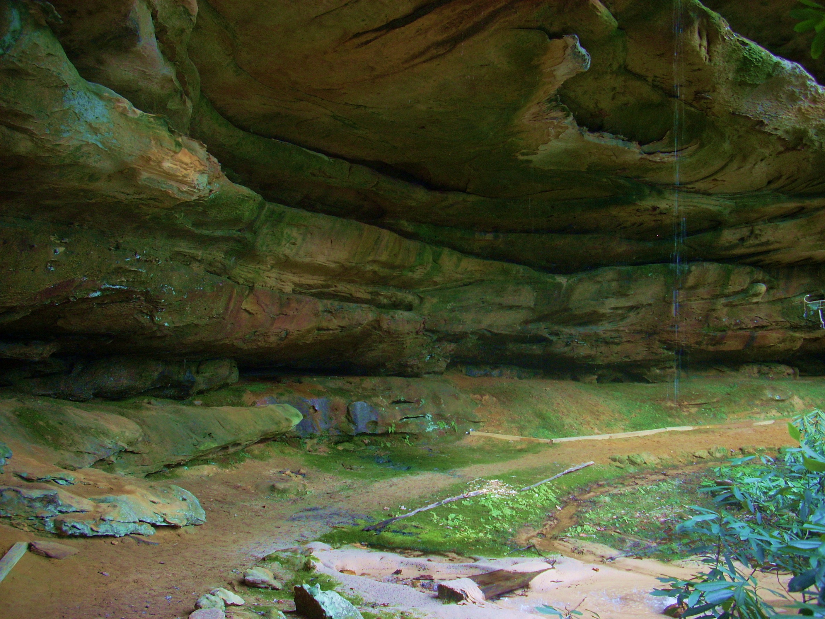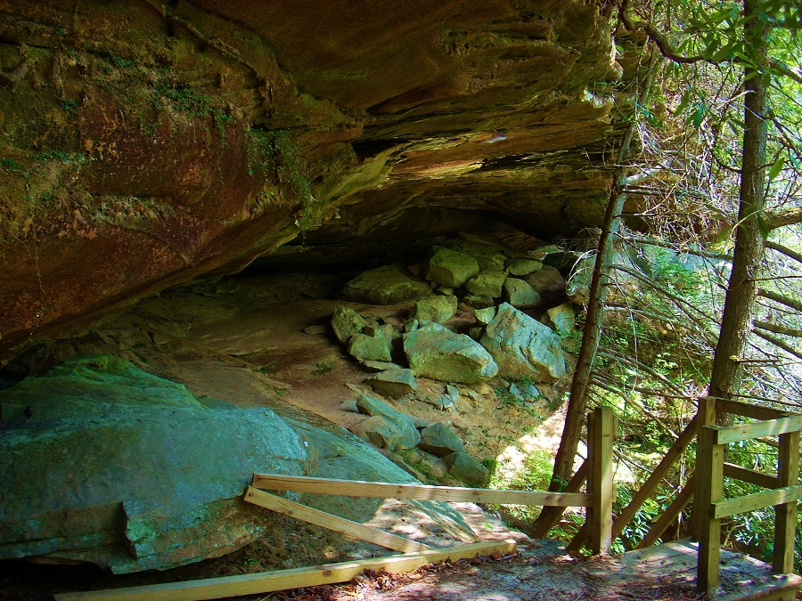 This is followed by a stroll under and through a large rock overhang. At first it doesn't seem like you'll be able to get through given all the fallen rocks, but you can. The path meanders all the way back through this maze of rock to resume on the other side. Note that on both sides you'll find signposts which indicate that this is a Cumberland Sandwort Protection Area. Sandwort (seen in the third photo below) is a pleasant little plant that is endangered. It’s apparently only found in this area of the country and it’s got a very delicate root system.