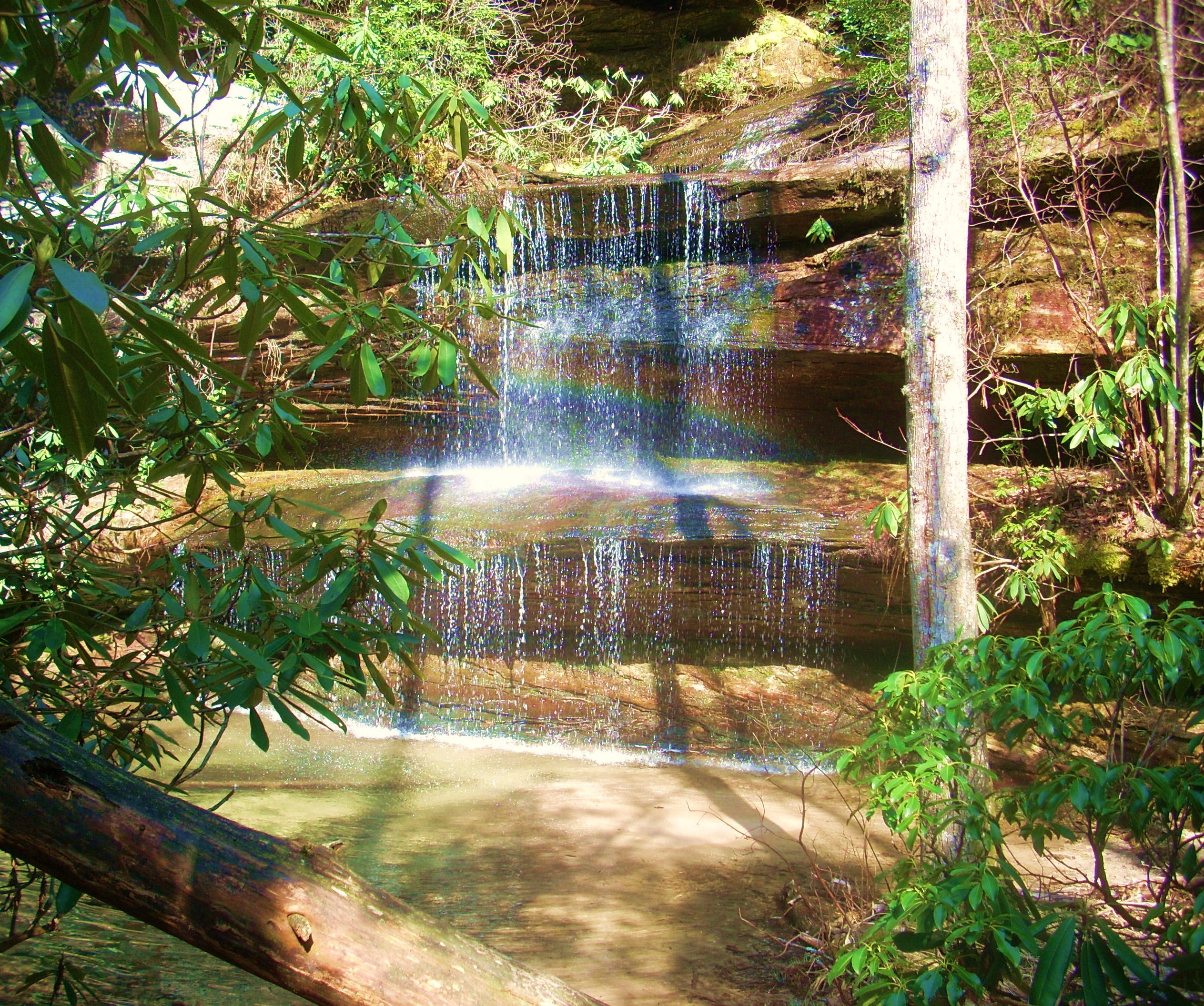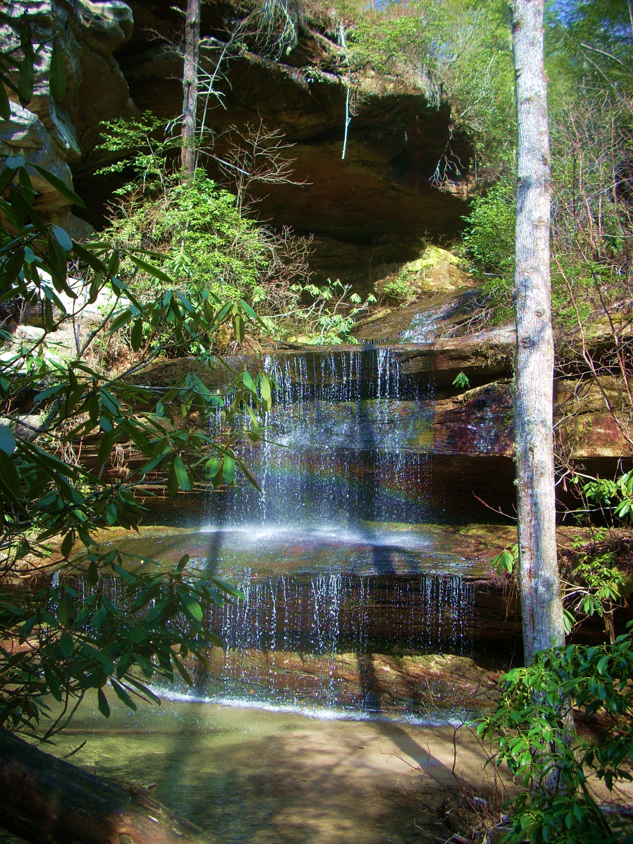 The “wow” factor isn't over yet. A second trail intersection will soon come up just before you reach a little set of stone steps. You'll definitely want to take the time to head to the right here and be led a very short distance downward to the sweetest little waterfall I think I've ever seen. It's not only that it's so pretty, it's also that you're able to get so up close and personal with it. Hopefully the rainbow shows up in the picture? I always have a hard time leaving this spot. It's encounters like this that have me making the sign of the cross in thanksgiving to God for the wonders of creation.