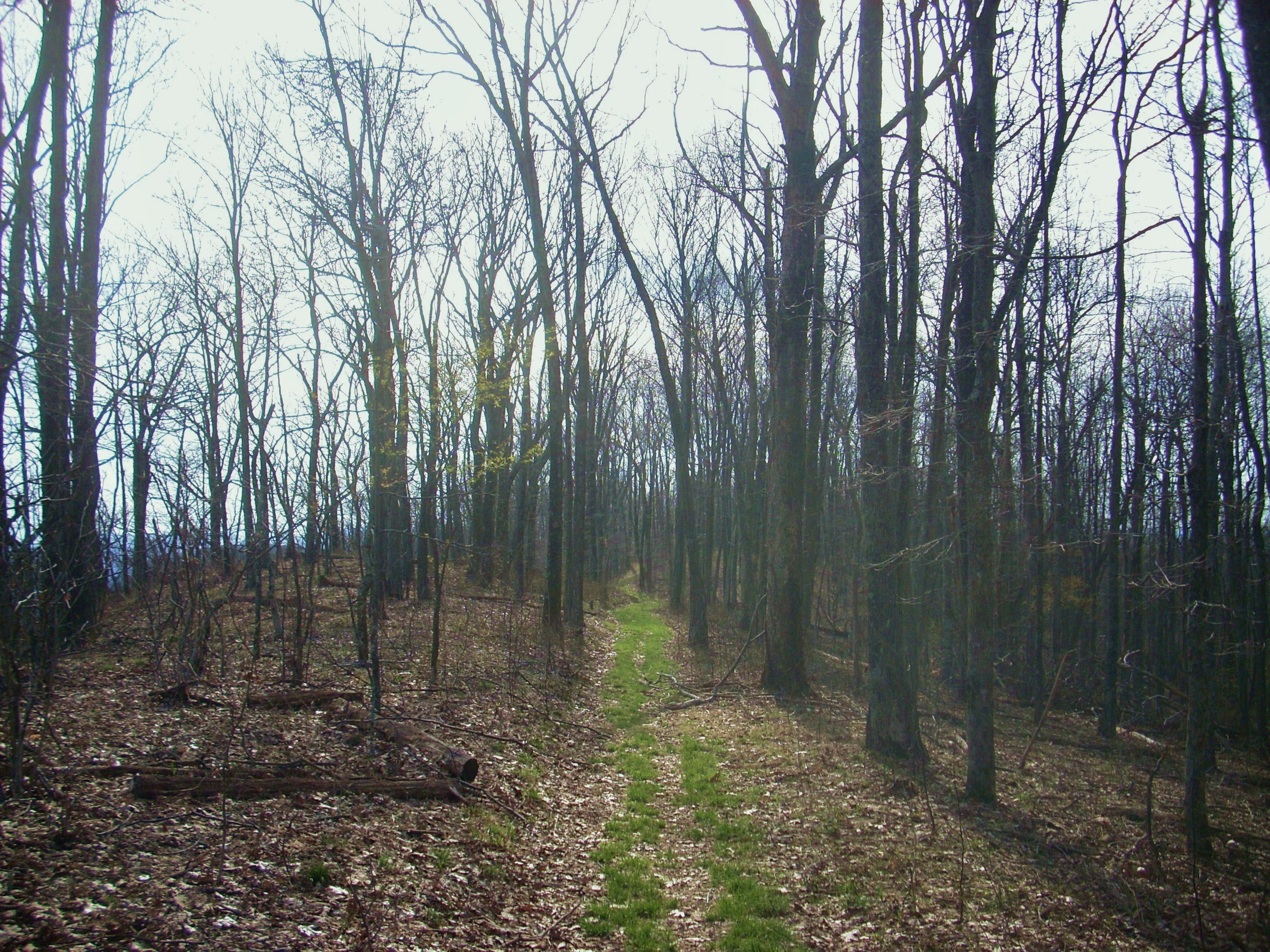I got a little confused at this point. I was expecting to be walking along a level path for a while but what you’ll actually want do here is make a curve down and to your left. Doing so, I found myself walking along a beautiful old road which was “paved” in grass! Look at this! It seemed to me at the time that this must be the most beautiful road in existence!