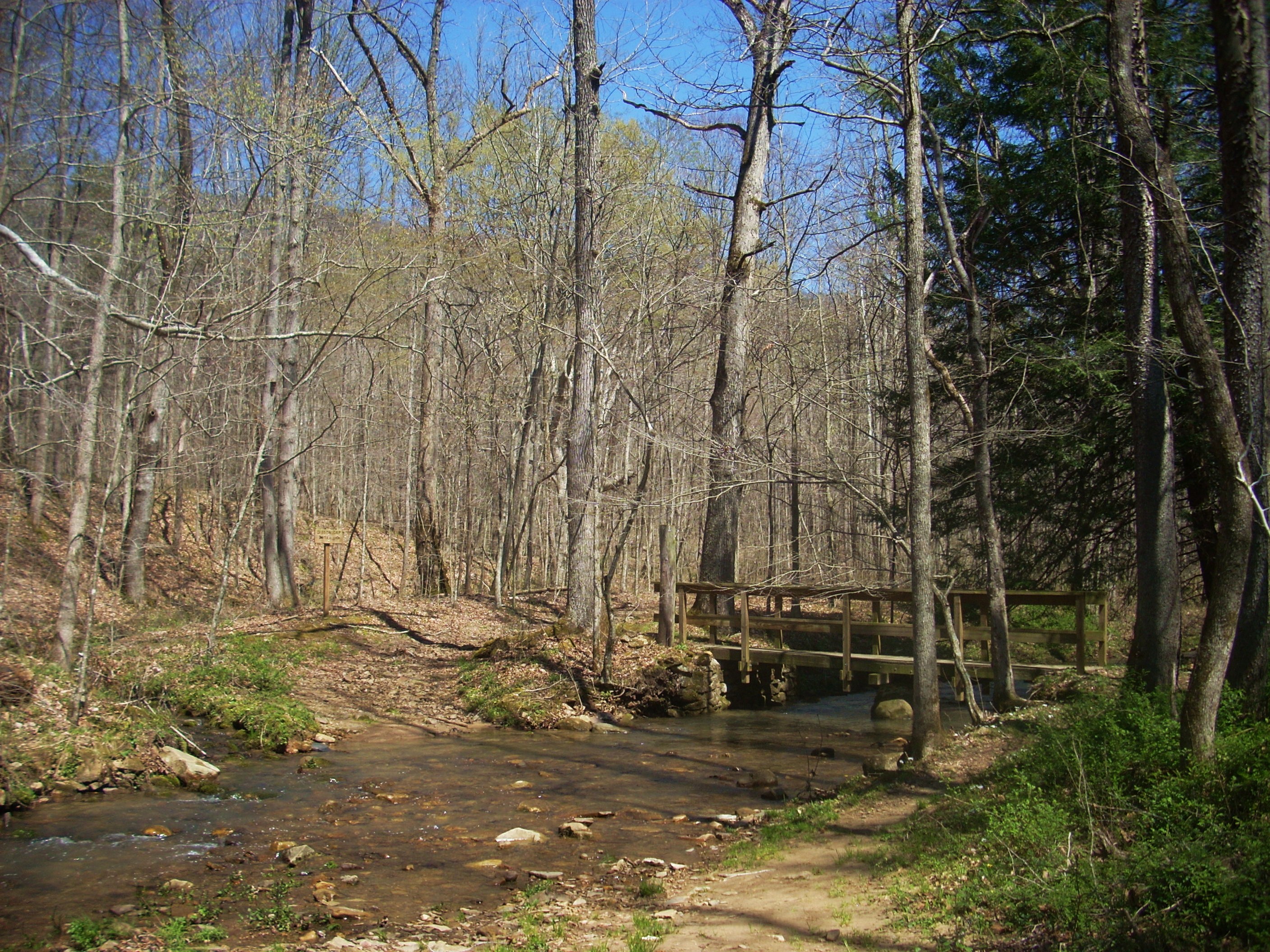 Then, when you reach a point where there’s a trickling creek right beside you and it looks like two roads (ancient-looking at this point) meet, you’ll make a right and cross over the stream. This is either Station Creek or a branch of it - it’s hard to tell - but what you’ll find is that this stream has more twists and tributaries than Quakers’ got oats! I may have made more stream crossings in the first few miles of this hike than I’ve made on any other.