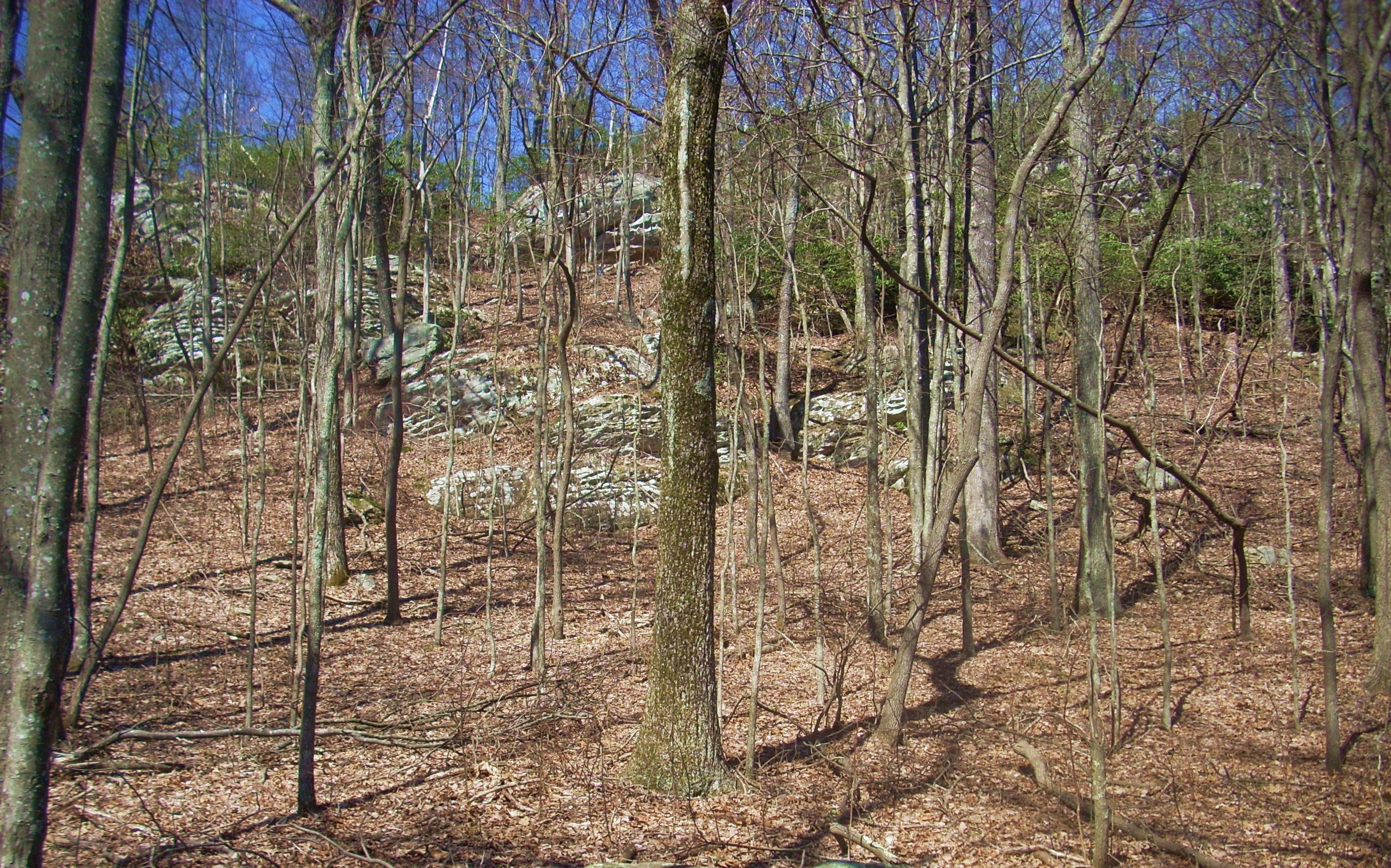 The first part of your descent from the ridge will actually be a big dip in the Ridge Trail before it ascends anew to reach The Pinnacle (another outcrop of rock in the park with stunning views). Another trail intersection greets you here. It indicates that the Pinnacle is to your right along the Ridge Trail while the Lewis Hollow Trail will begin with a descent to your left. While the Pinnacle is a great spot to visit (see another entry), today I just followed along Lewis Hollow as it ran down the mountain beside another tributary of Station Creek. The stream had really carved a beautiful little valley out of the rock here!