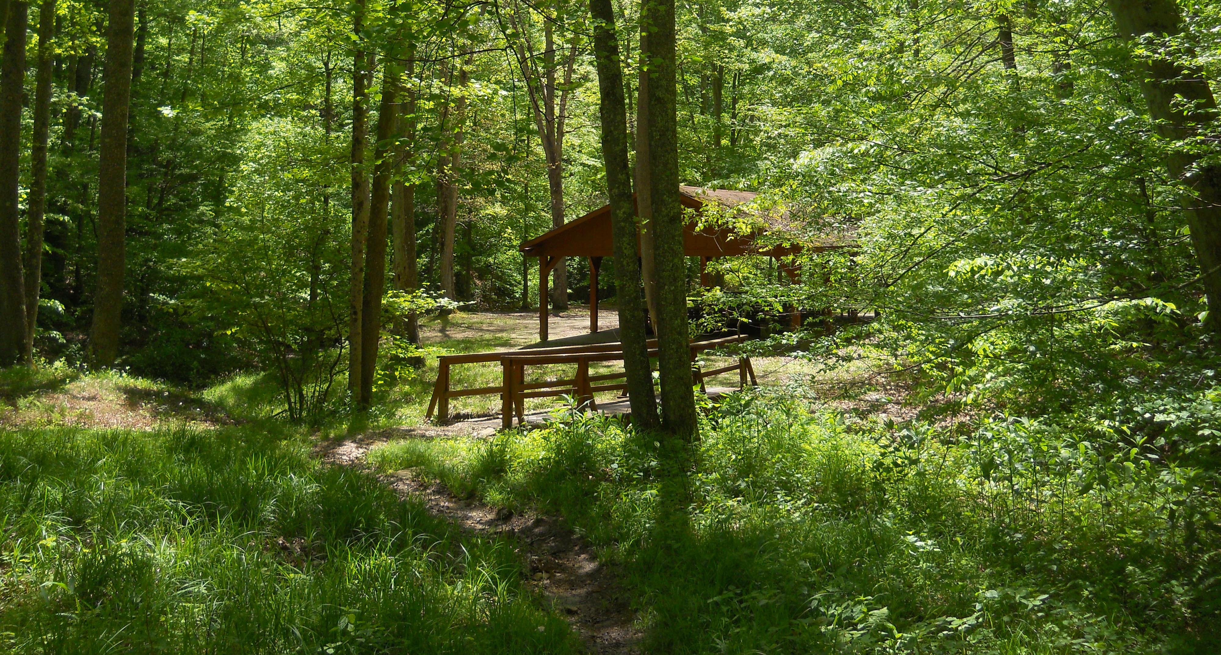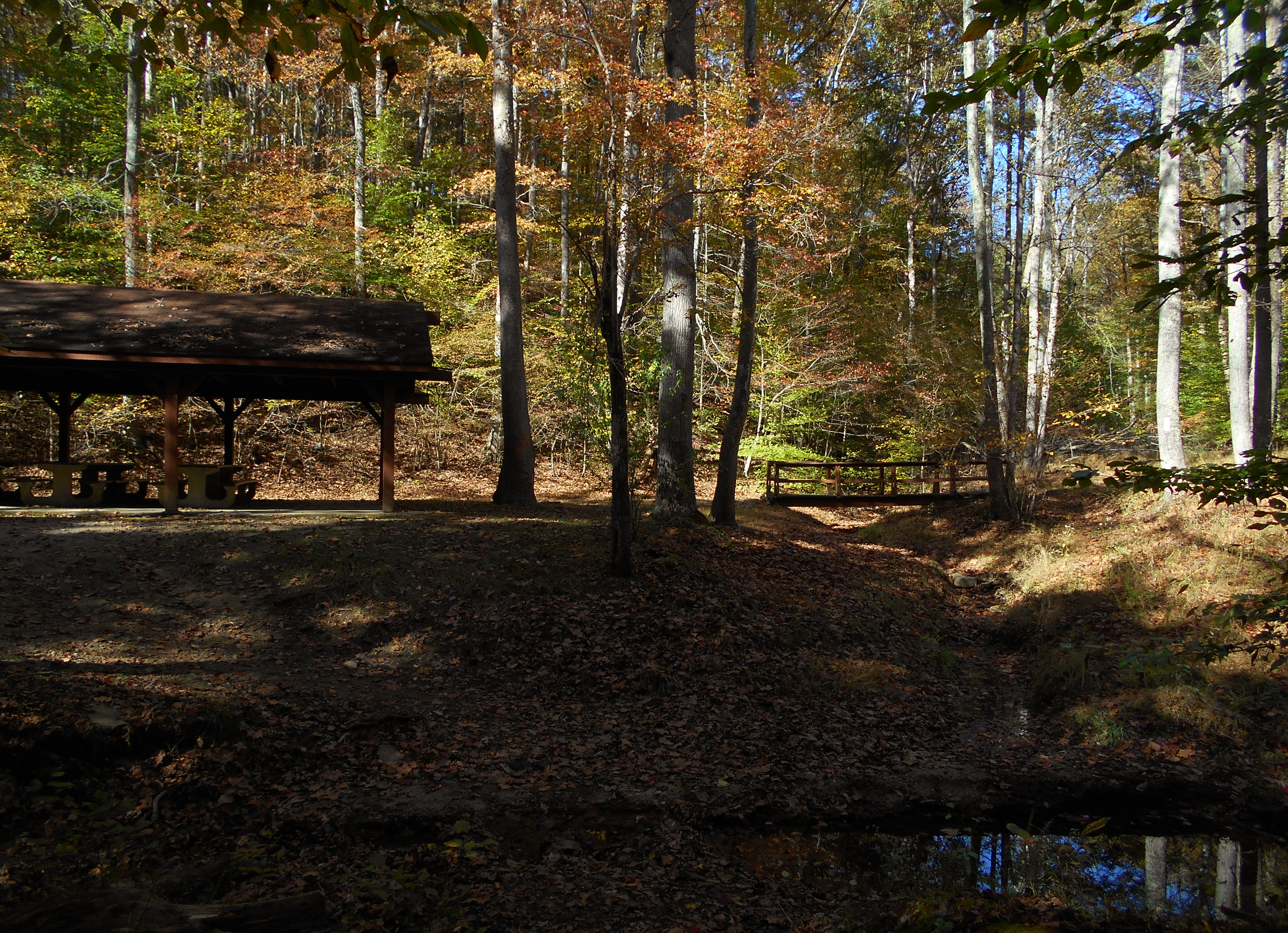 You'll soon reach a picnic shelter where you'll notice another bridge to the right. You'll want to cross it to continue. This is a particularly beautiful area in the Spring...