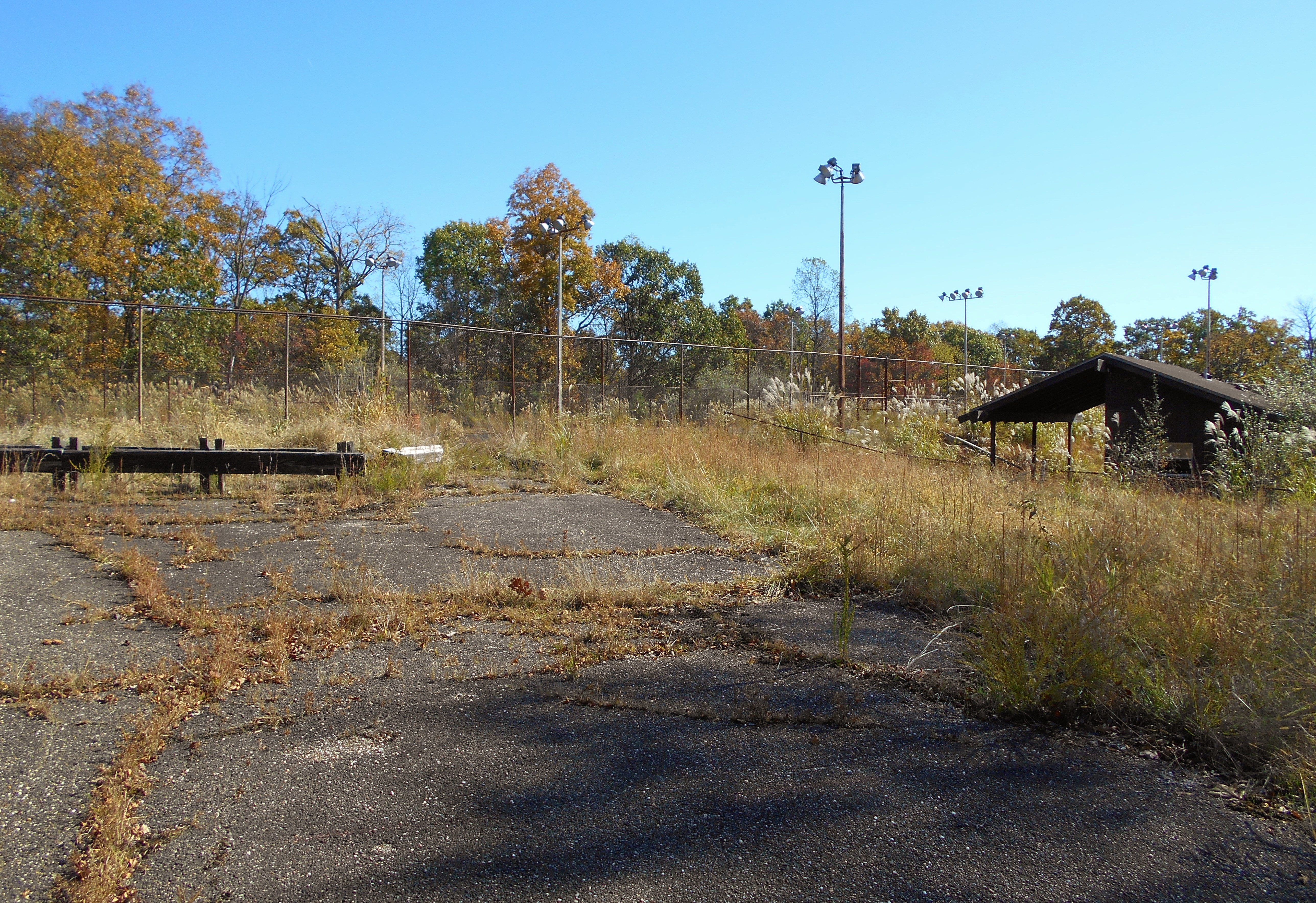 The old tennis courts and concession stand are up the road to you right...