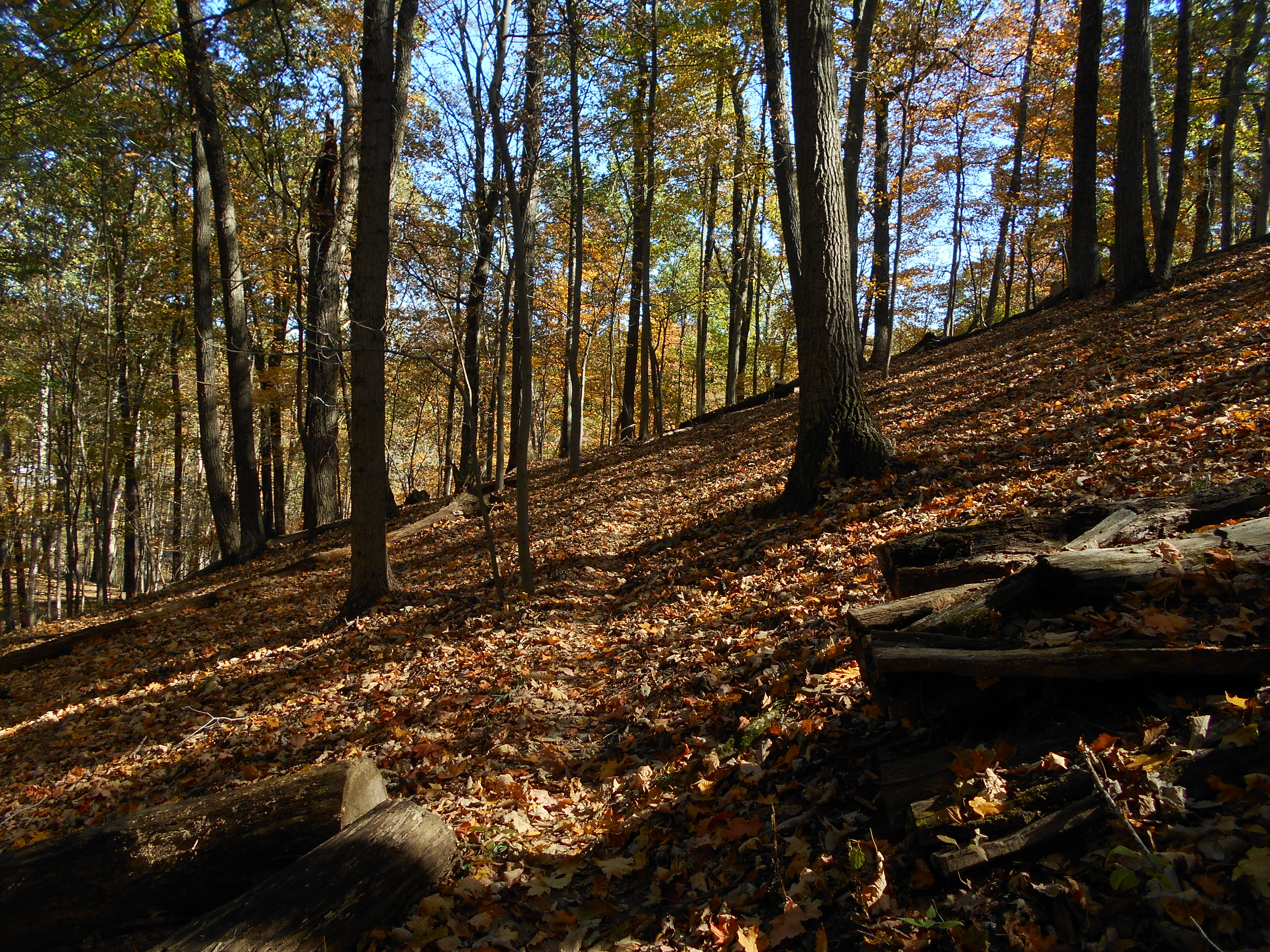 From here I retraced my steps back to the trail and continued on Sand Hill/Savannah to complete the trip all the way around this hill they call "the moon". You'll pass by the old baseball fields along the way (and you can see the chain link fence above you at one point). These Northern paths are all very pleasant woodsy strolls to take. If you have issues in your life to sort out (and who doesn't?) this section would be a great place to do so with it's long, wooded walks. Tecumseh and Medicine Man in the Western section are the same way.