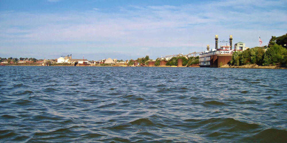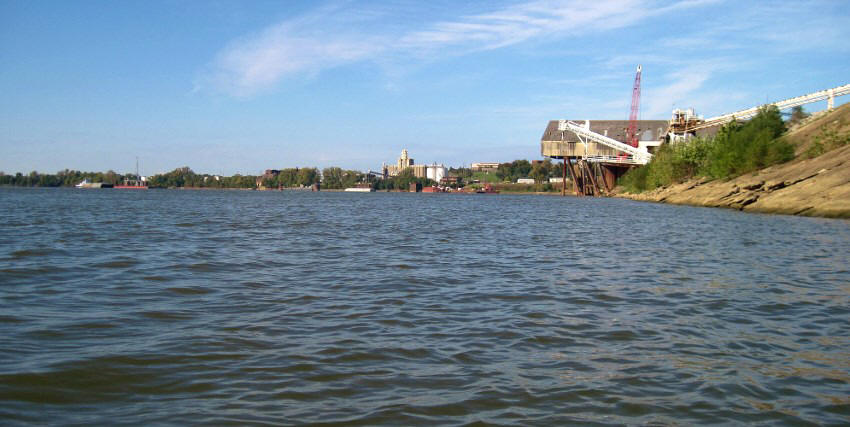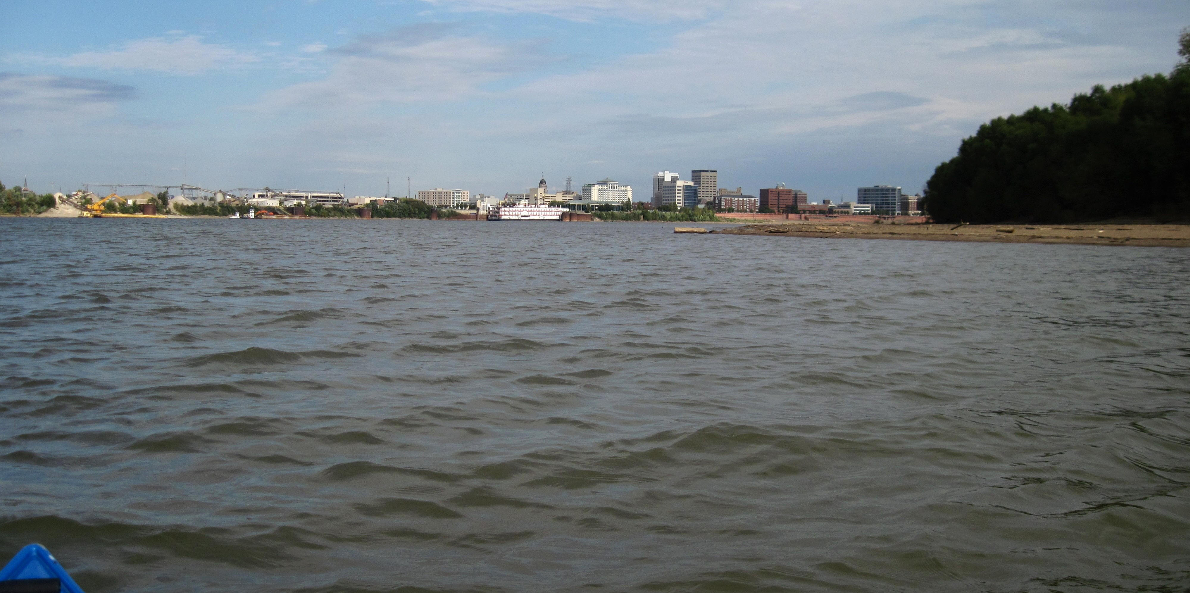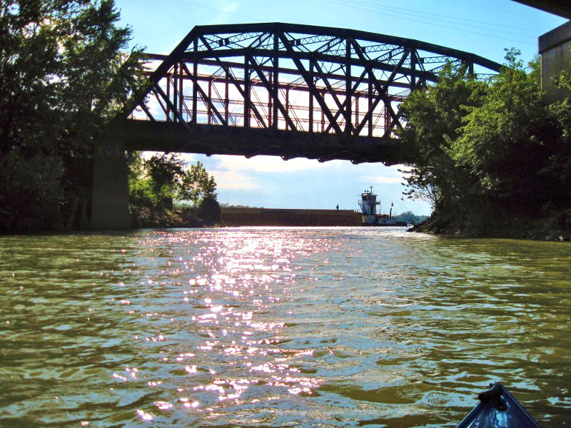 Pigeon Creek runs through the city of Evansville, Indiana to empty out into the Ohio River at around mile 793. It makes for a nice day trip. Today I accessed the stream by putting in from the Ohio River ramp in downtown Evansville (Pigeon Creek lies only about ½ mile downstream from this point). My intention today was simply to paddle upstream on the creek to see how far I could get. I know that the Wesselman Nature Society used to offer paddling trips on this stream, but as of 2024 it doesn't look like they do anymore. You can, however, hike along this stream on the town trail system they call the Pigeon Creek Greenway Passage.