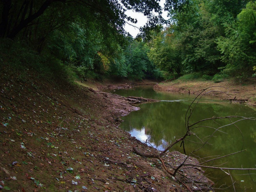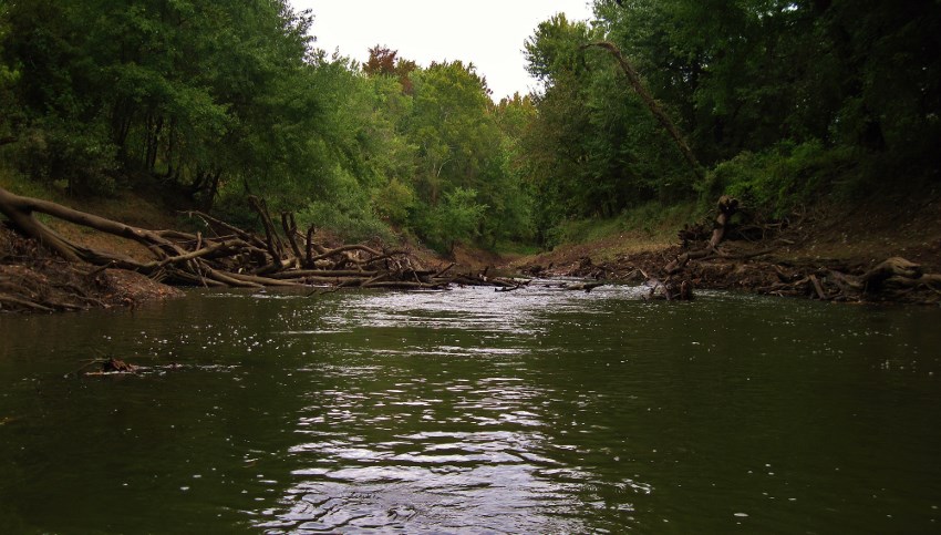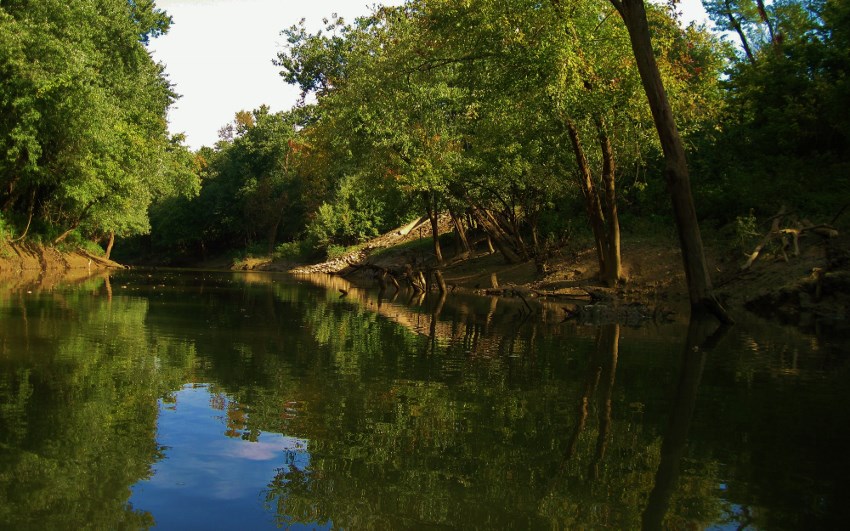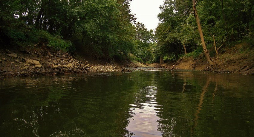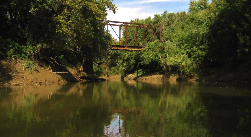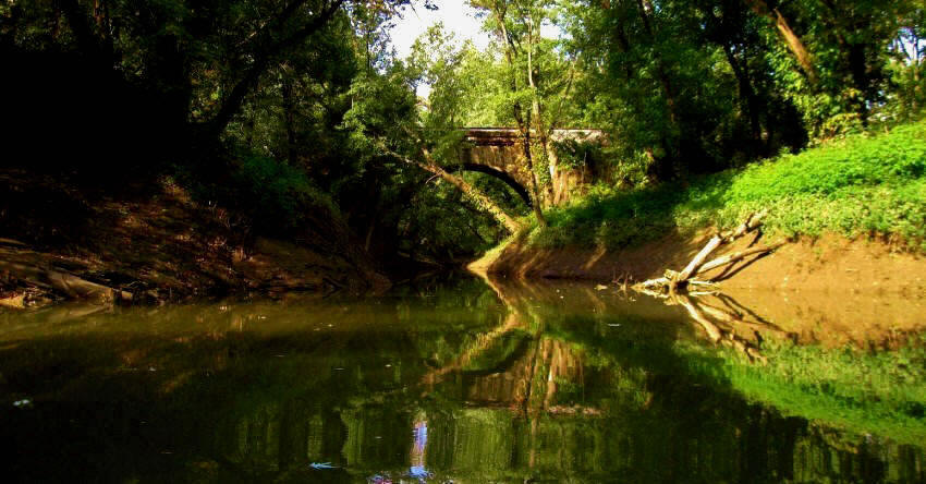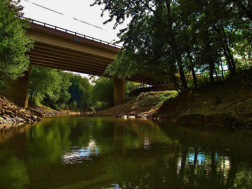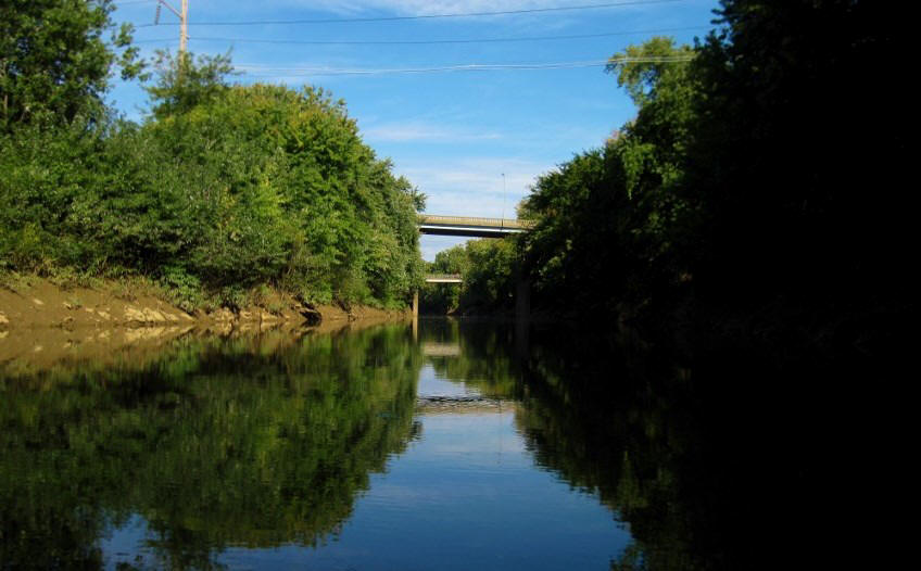 Next up, you’ll meet with a sharp right curve in the river. What’s essentially happening here is that you’re “bumping up” against the foundation of Route 66, the Diamond Expressway. You’ll find that the river hits it and then retreats, heading southward for a time. Later the path of the stream will revisit the expressway to pass underneath it, but in the midst of this particular curve you’ll encounter two more bridges - the Kratzville Road/Fulton Avenue Bridge and then the First Avenue Bridge. A sign on the latter indicated that I’d come 3 miles, yet the shallow water that came after this bridge really had me wondering just how much further I’d get.