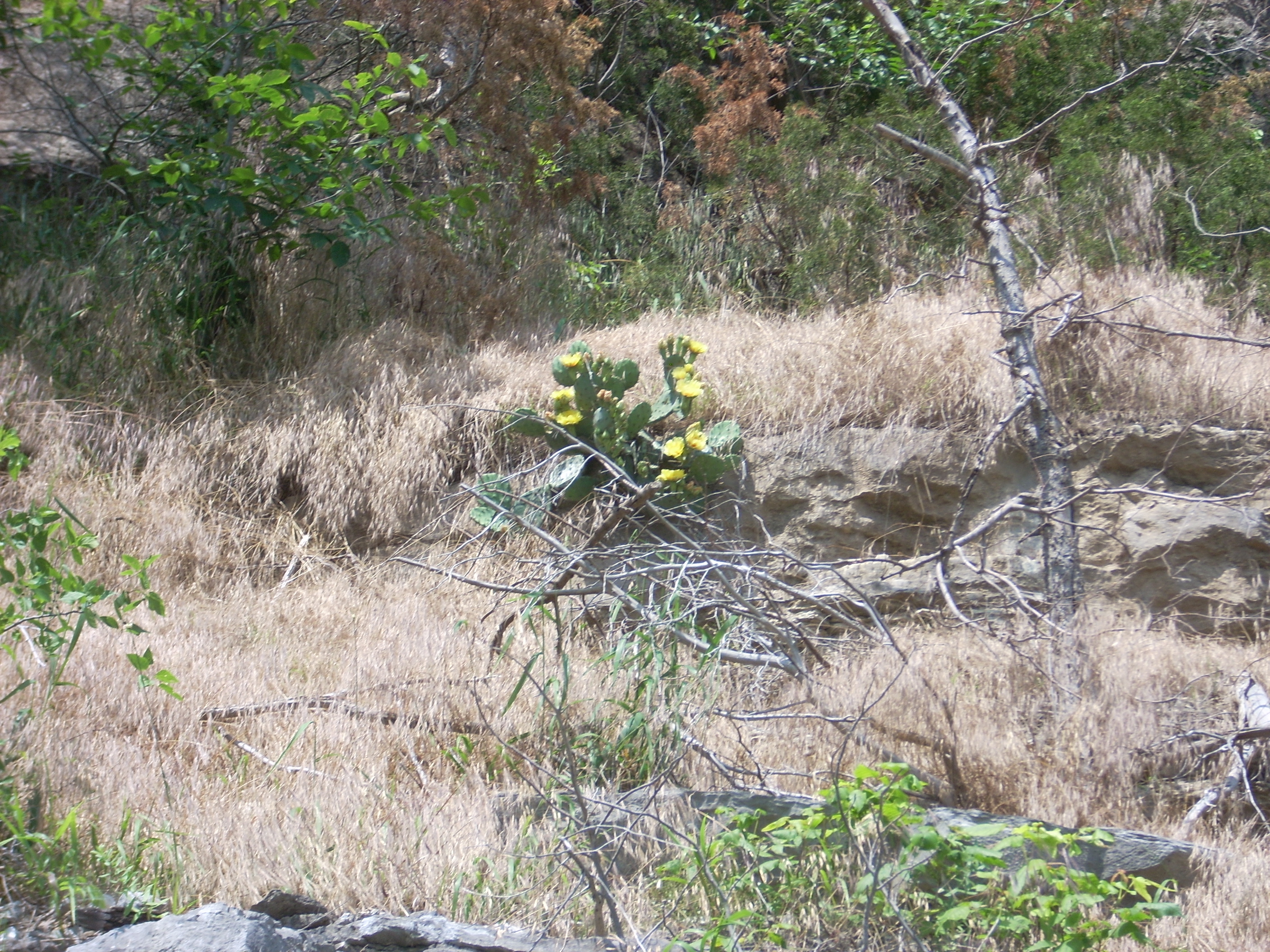 Things get interesting near the top of the second rise in this first “M”. On the left you’ll have a nice rock face which had some good color on this day, with the white and grey of the rock merging with the green of the trees and the brown color of the summer singed grass. In fact, the reader may think I’m crazy but this trip reminded me in some ways of the one I took on the Pedernales River (via Lake Travis) outside Austin, Texas - without the longhorns. The landscape is similar in its undulation, and I even saw some of the same kind of yellow flowered cacti out here!