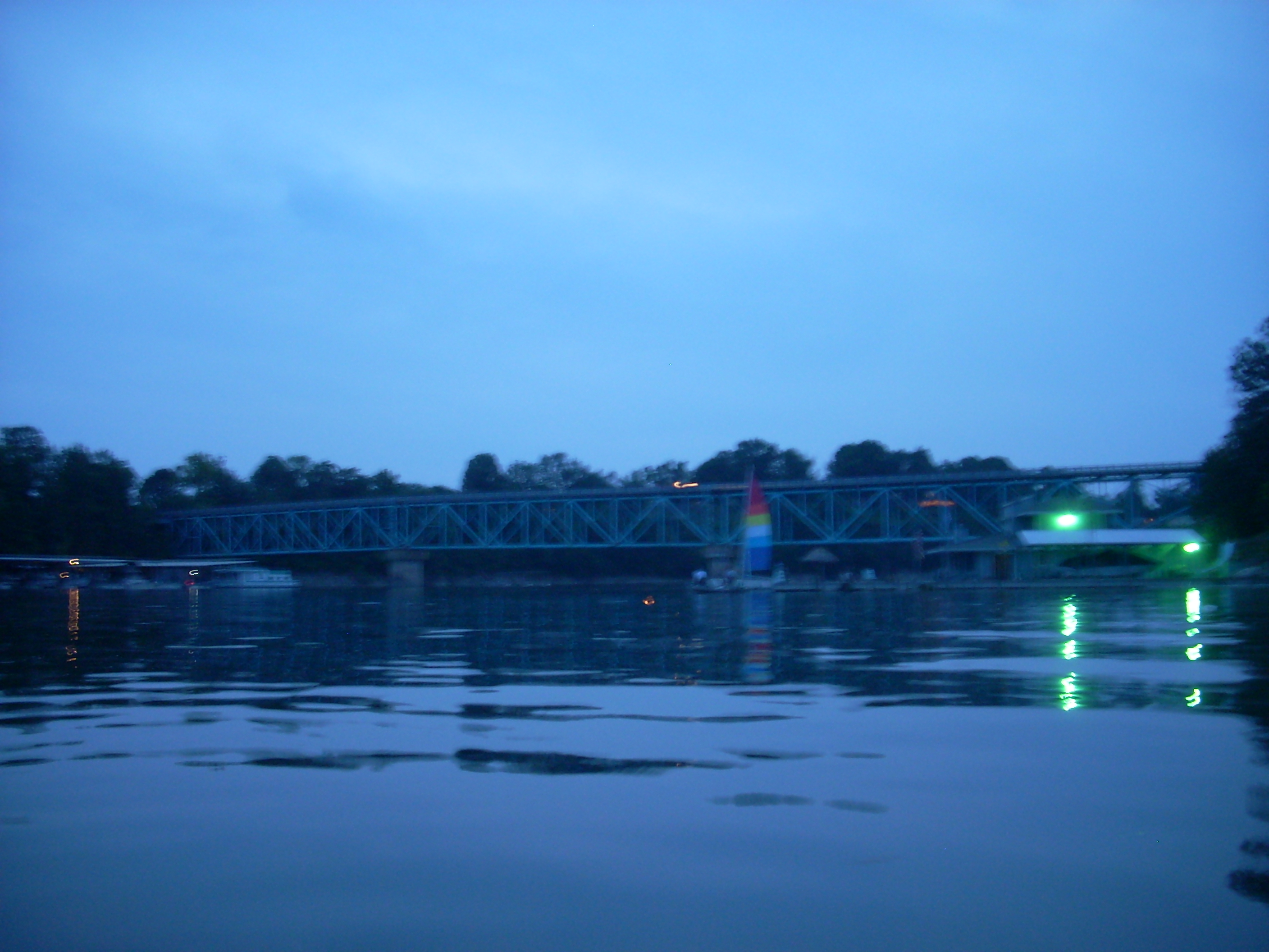 The headlights of the cars going over the KY152 Bridge looked really cool from down on the water and I got some pictures - none of which turned out that great, unfortunately. Below is the best.