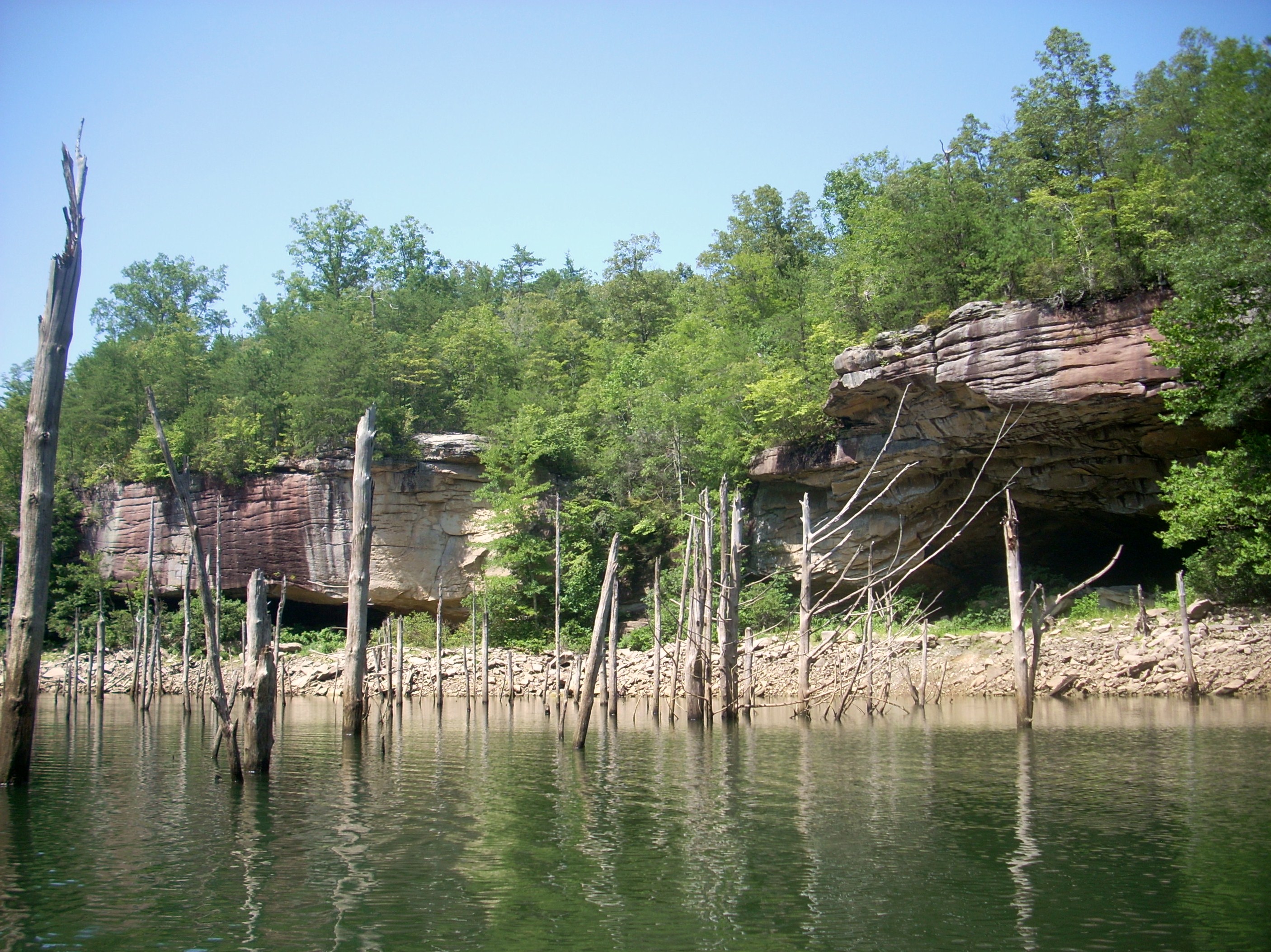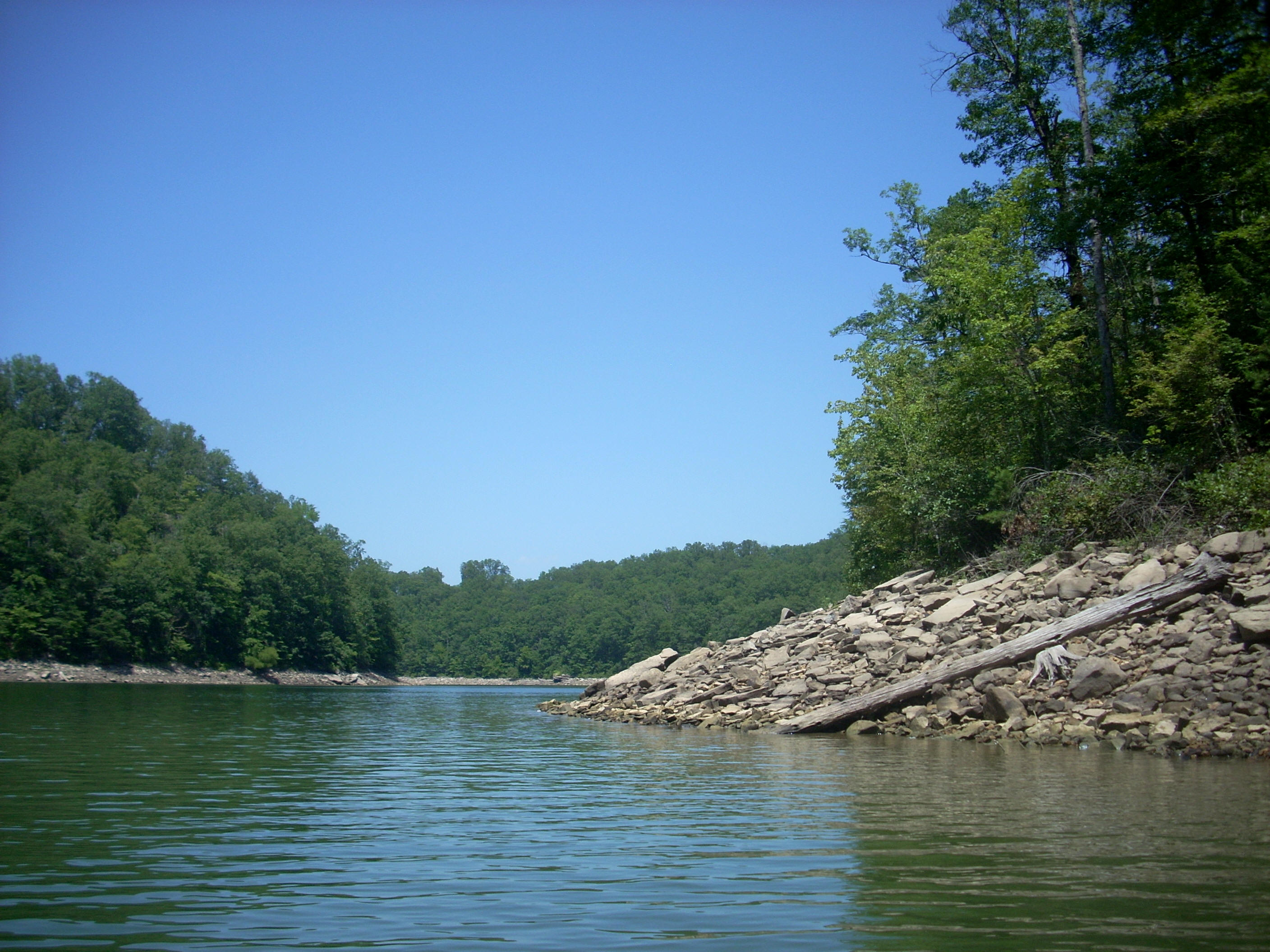 The dam had me thinking, though… If there are 2 of these out here (and I’m assuming that the downriver one that forms Laurel River Lake was put in a long time before this, second one) then that might explain why the shorelines of this lake take on the rocky appearance that they do. The terrain got used to the first dam as the plant life on the shoreline was swamped under, leaving nothing but rock. Then, when the second dam was put in, the lower water level left the rock exposed? I’ll have to do some research to verify this theory…