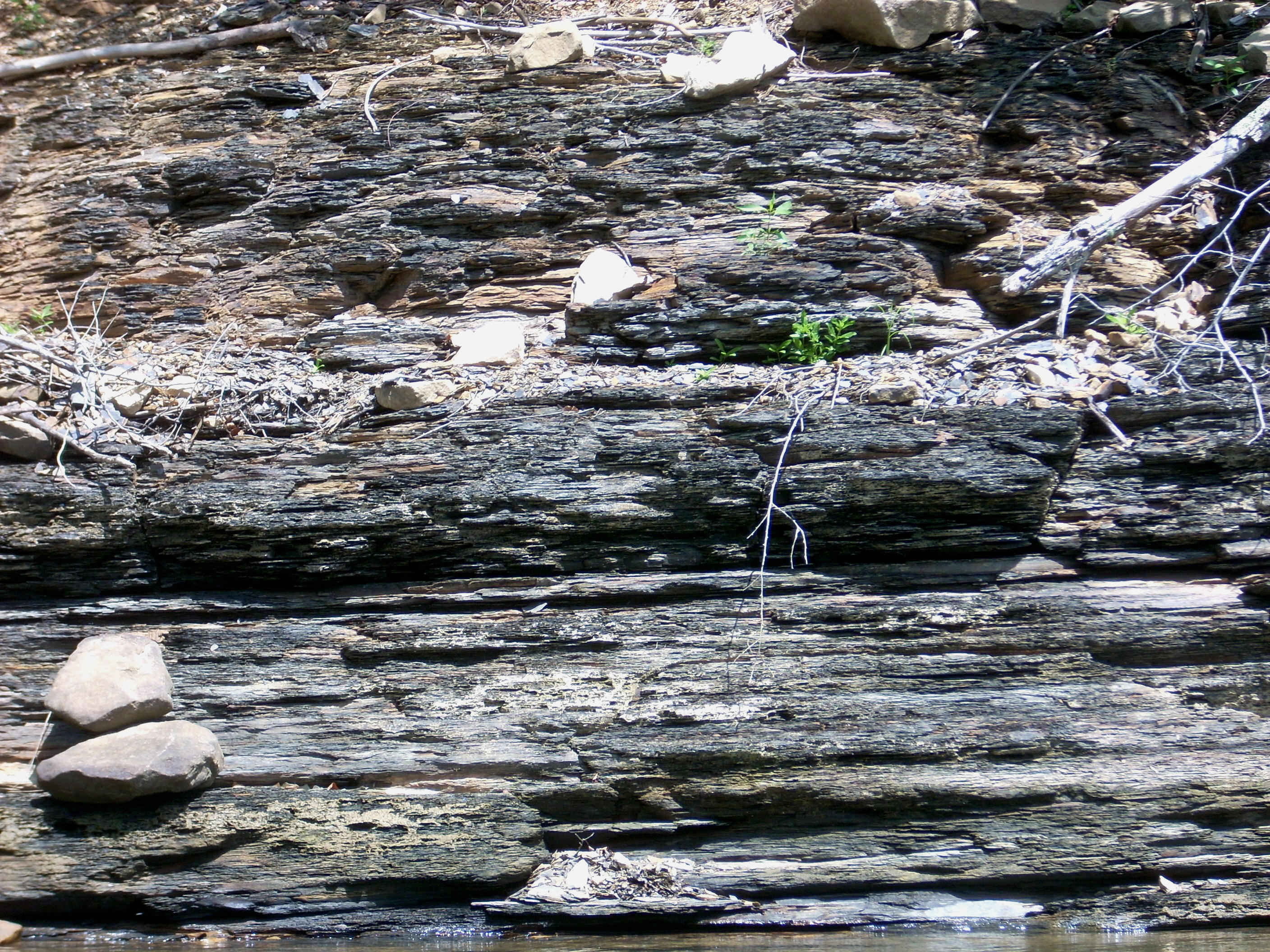 First the “R” (and these are capital letters)… It contained 2 coves, one which entered at the top (unnamed so far as I know) and one that entered at the middle of the back end (Mill Creek). Cove #1 had some incredibly fine shale which I took a picture of, but my camera didn’t have enough pixels to do the scene justice.