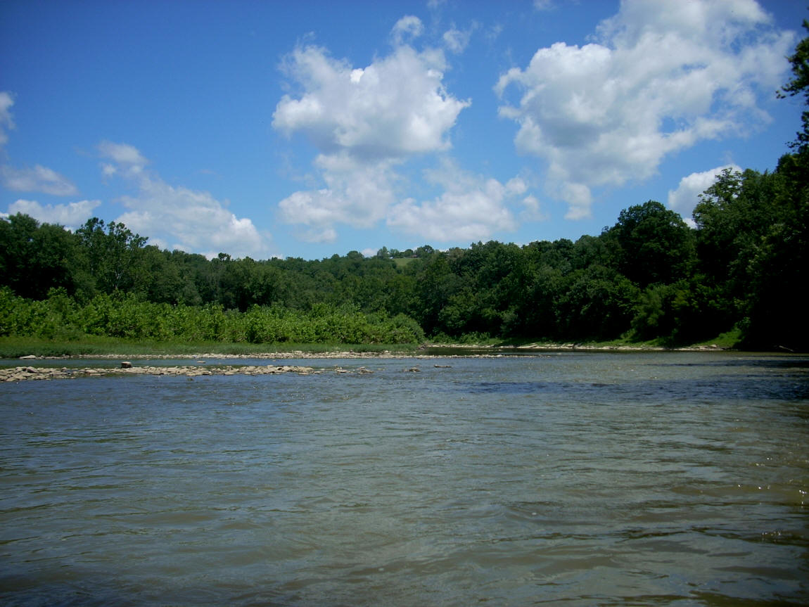 Anyway, the area all around the fully converged Licking is almost one large shoal. In fact, you’ll encounter shoals almost continuously for about the first quarter of this trip. These particular ones had pleasant little riffles of water which presented an interesting challenge as I tried to pick the best way downstream. It ended up being negotiable, but further down it would be more challenging.