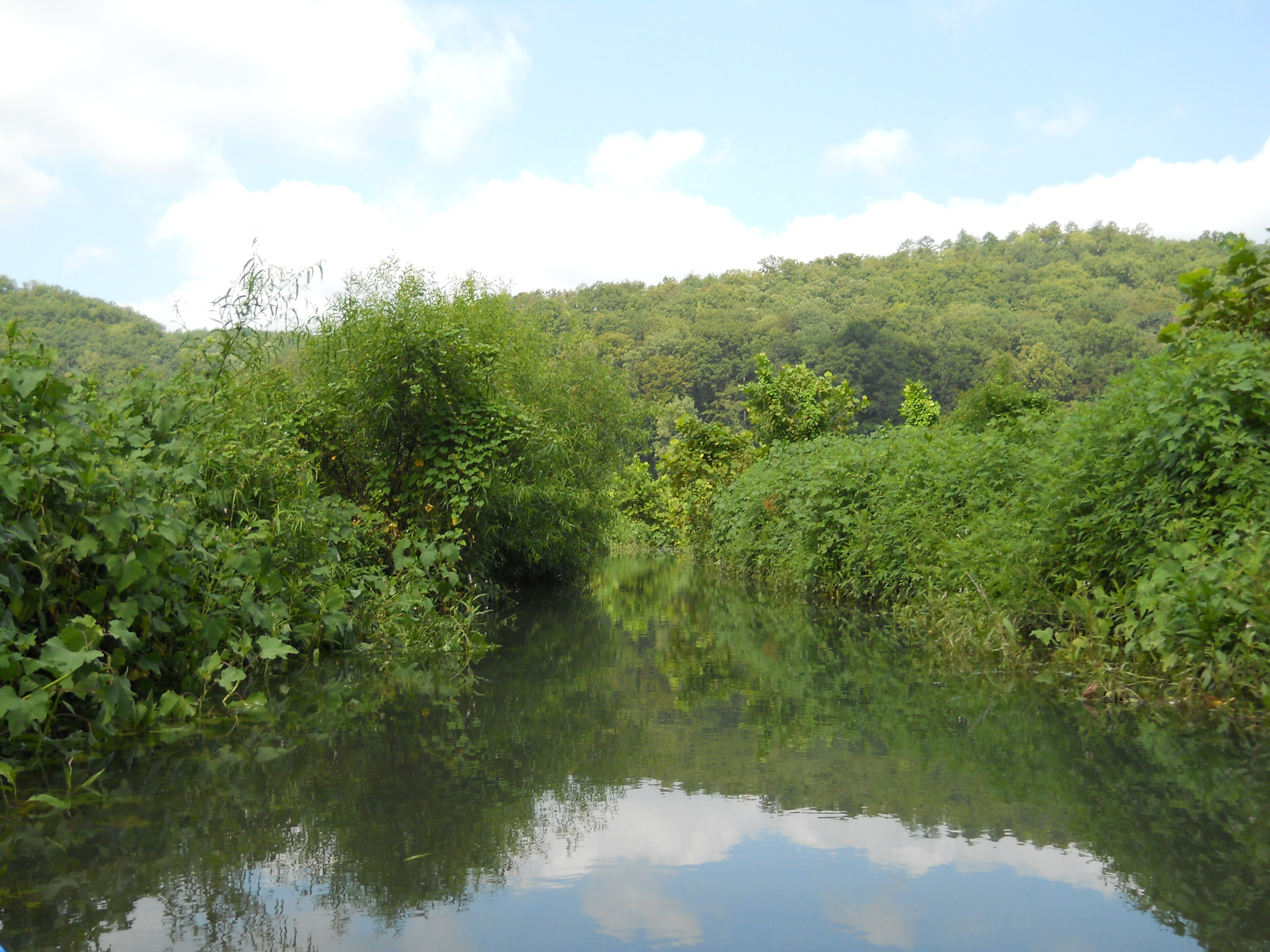 As I put in and started paddling upriver, I found myself on a long left curve. It’ll be most apparent when you look at a satellite map, but you’ll also be able to tell from down on the water where the coves had once been – you can clearly see the outlines. All just look like little incoming streams now. I made it into only a couple of these, due more to the dense vegetation than anything else, getting about 100 yards into the first on the right. I felt a little wistful, though, when I realized that the new forest growth would soon be swamped under again.