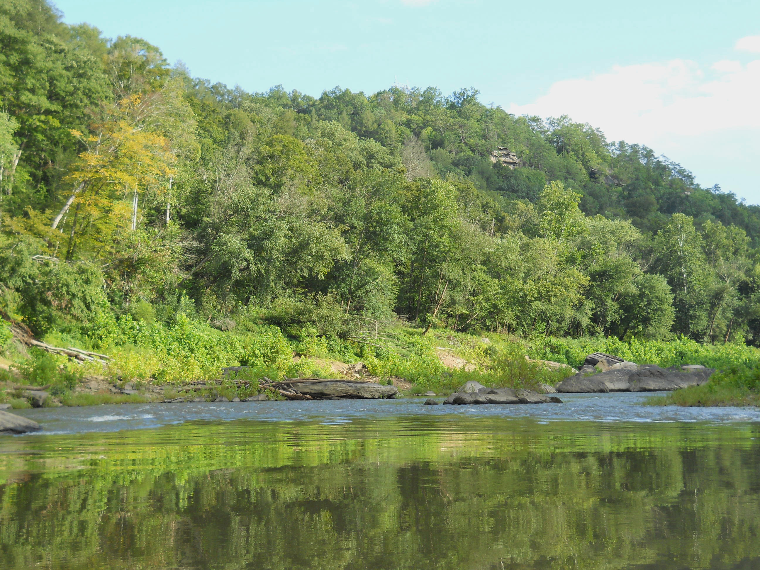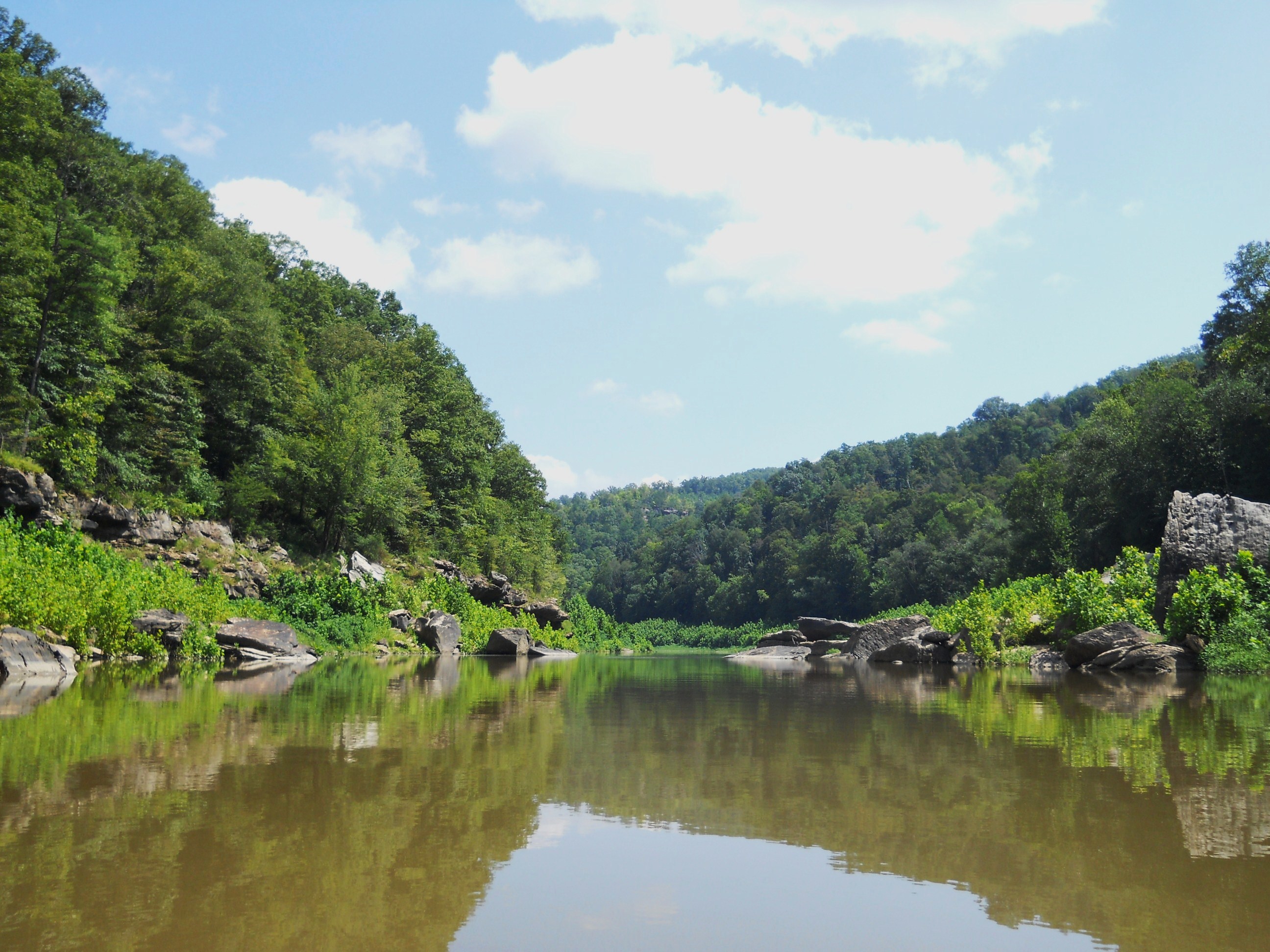 This first (maybe 1/3) portion is basically a long “C” which ends at Bear Creek (incoming from the left), and throughout this area you’ll see nice looking rock outcrops atop the mountains. I know that one of them on the right has a few lookout points that you can check out on that Rockcastle/Cumberland hike I mentioned, but today I couldn’t tell which one it was.
