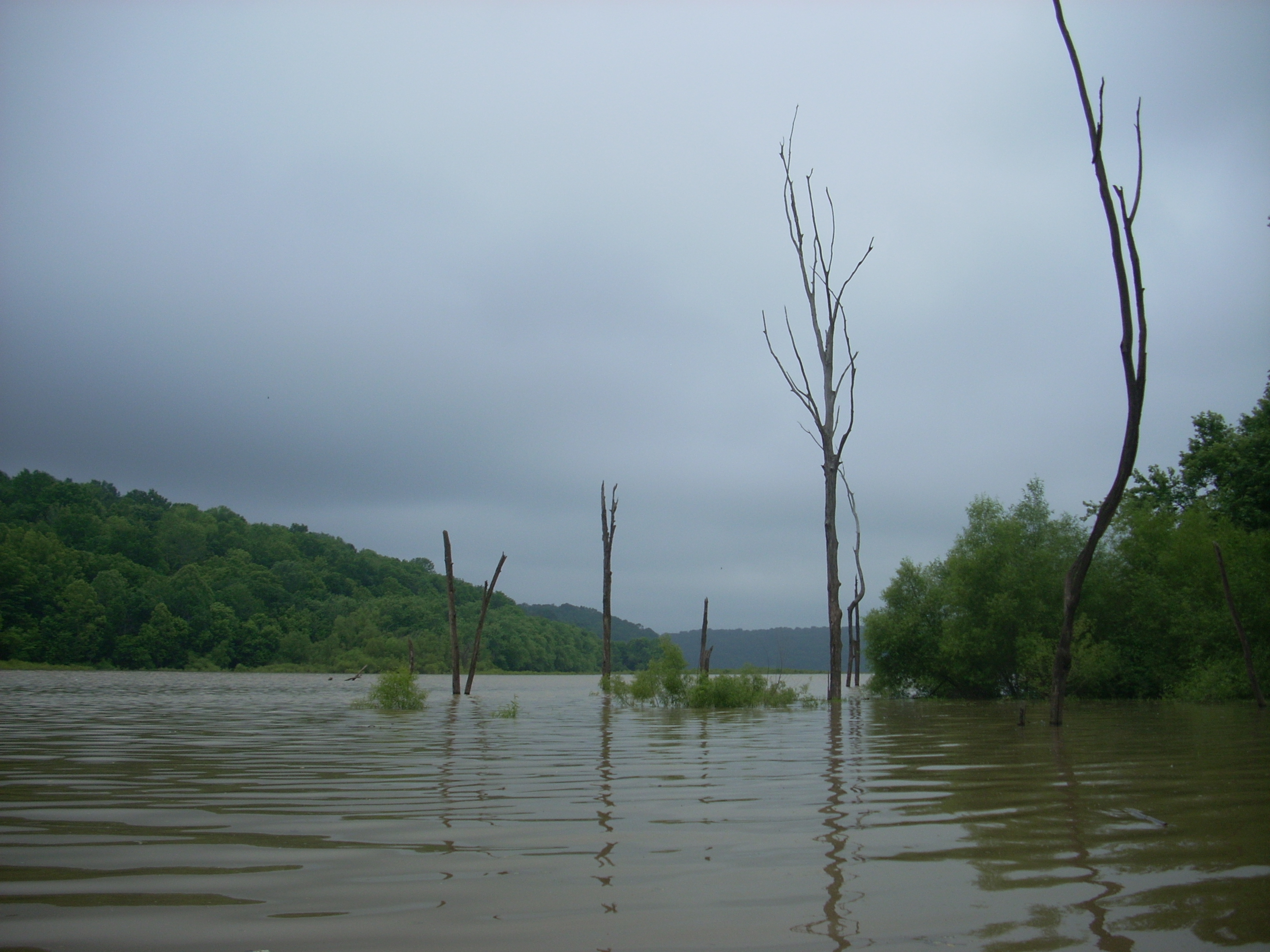 After I’d made the bend at the top of the “A” I saw the bridge for KY248 in the distance, and as I approached it I saw that there was an “ear” on the left side just before reaching it. I paddled in through the narrow base and, once inside, I encountered the most incredibly scenic little fishing pond I think I’ve ever seen – it’s amazing and it begs to be seen! Check it out… The first picture was taken looking at the entrance, the second was taken as I’d rounded the first corner, and last was taken looking back out. In fact, I should have taken a video of it so that I could show the entire thing because it’s that impressive.