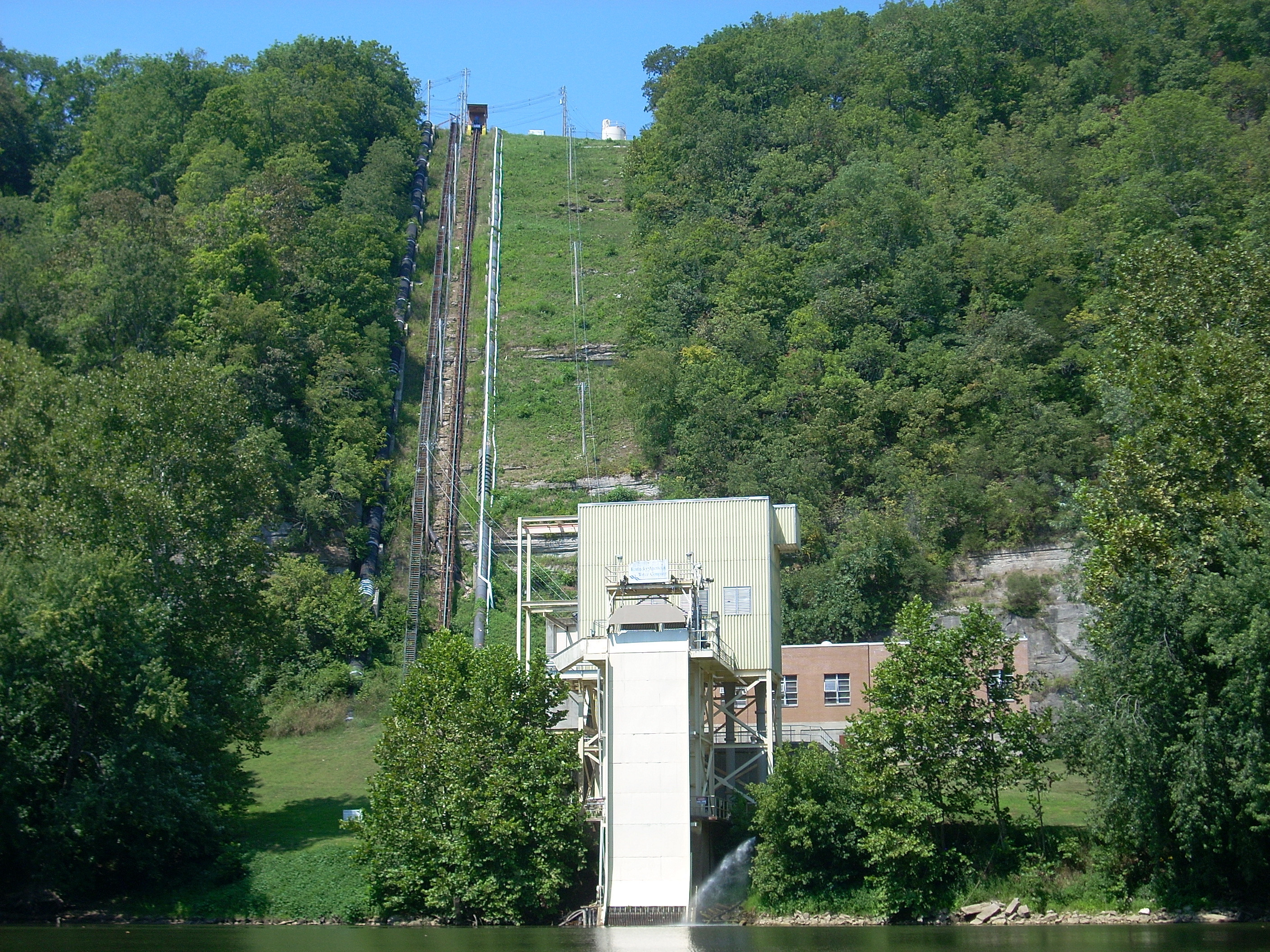 The Elk Lick Creek comes in next, but it was dry over a large shoal today. This would have been a great place to stop but there were signs which discouraged doing so, and just before the next palisades at mile 167 you’ll see a Kentucky American Water intake. This location is truly amazing. There are at least 4 things going up this mountain. The water intake itself, another pipeline which apparently returns some water back to the river (I know this simply because there was a flow of water coming out at the time), a staircase and a kind of rail line. This is all accompanied by the hum of the machinery. As I paddled by today I got an unexpected surprise too - a guy coming down in a little cart on the rail! Altogether interesting!