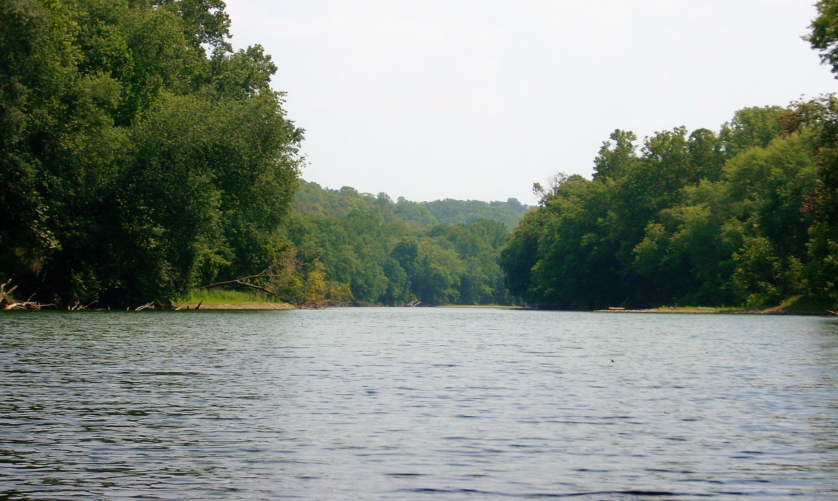 Anyway, the river makes a right curve downstream from the dam, and the Cedar Point Run comes in on the left at mile 156.5. I saw a fish here that I hadn’t seen before on the right. It looked like a gar but it was colored black. I also spotted what I guessed were a couple large catfish on this trip as well as a ton of minnows.