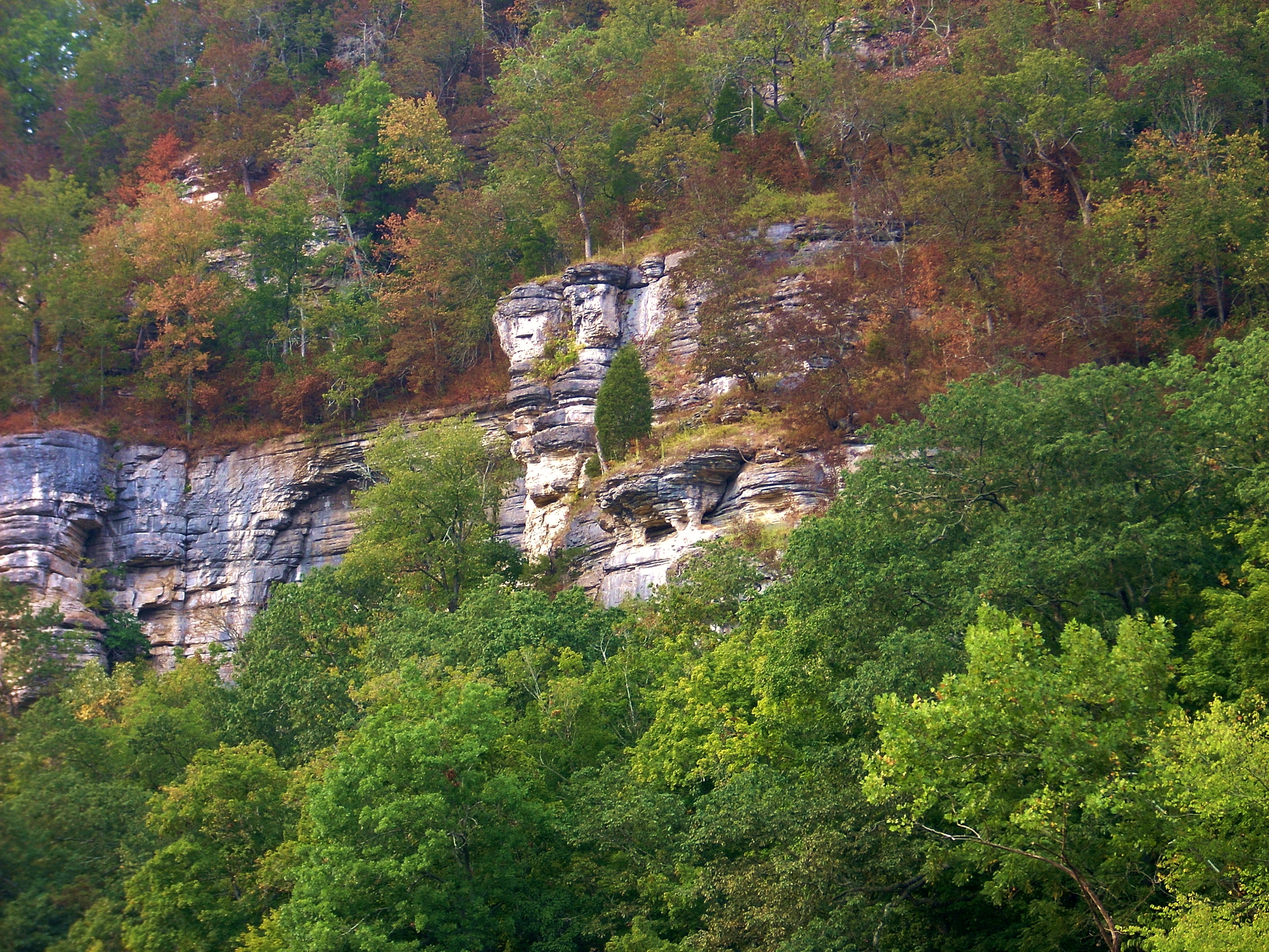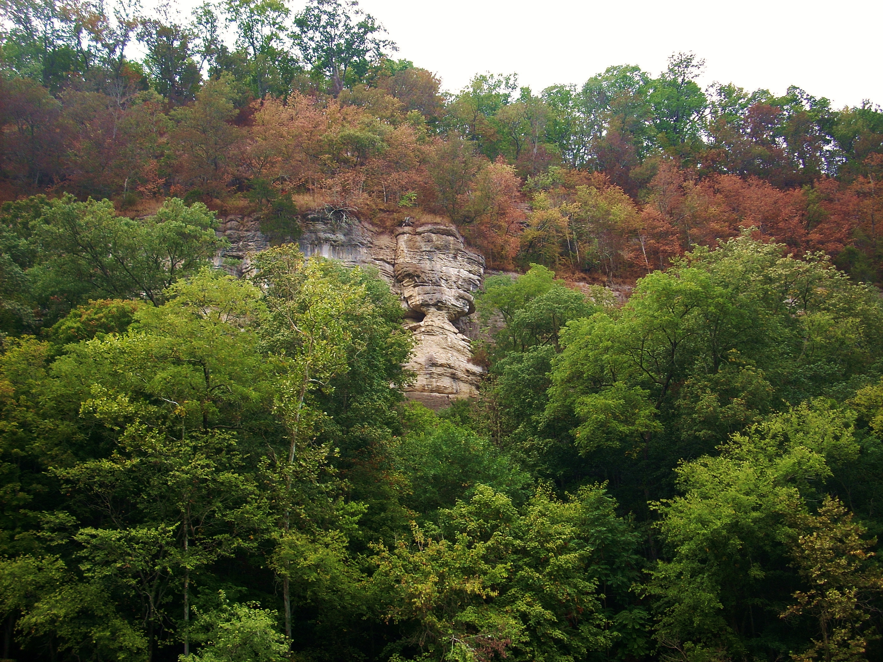 Just as the Bowman Family had once run a warehouse, the Major Family did as well. Their's came next along Majors Landing at mile 120. Here was another ferry as well as an excursion cruise boat! The latter must have been somewhat akin to the Dixie Belle at Shaker Landing a couple more miles down, and on the right was where I spotted what I'm calling my “hourglass” and “altar” rock formations (although the second might be what the guidebook refers to as the Devil's Pulpit - I can't tell from the angle). Am I stretching things? Probably. Finding rock formations is like trying to find different shapes in the clouds - the forms sometimes lie only in the eye of the beholder.