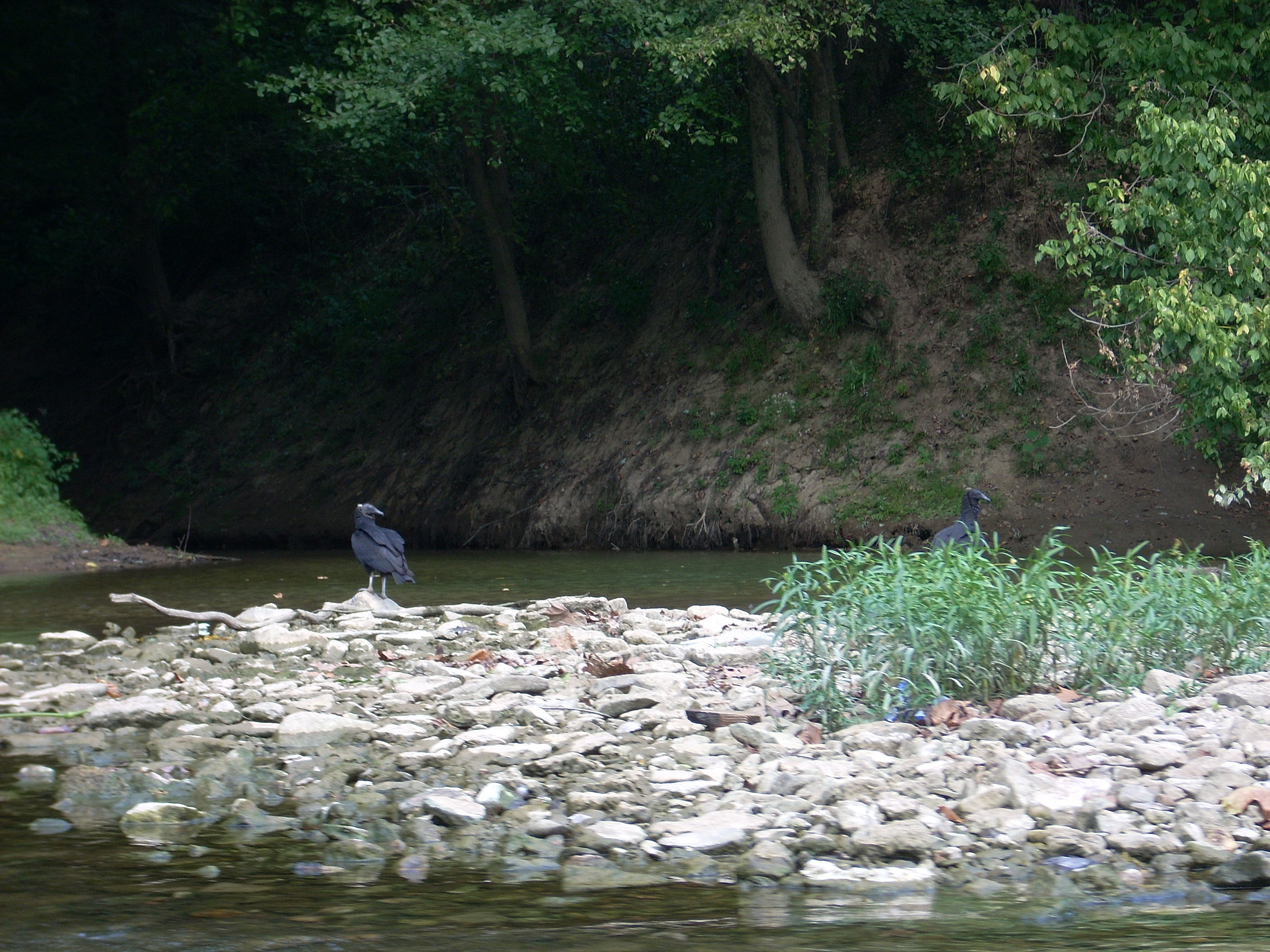 There were several turkey buzzards here that were not scared off by my presence. They were too intent on fishing it seems. Some of them do a peculiar thing: they’ll sit in a line atop a log looking down with their wings spread apart as if ready to take flight at the first sign of a fish. They do this so closely together though, that the crowding would seem to take away any advantage that this would gain.