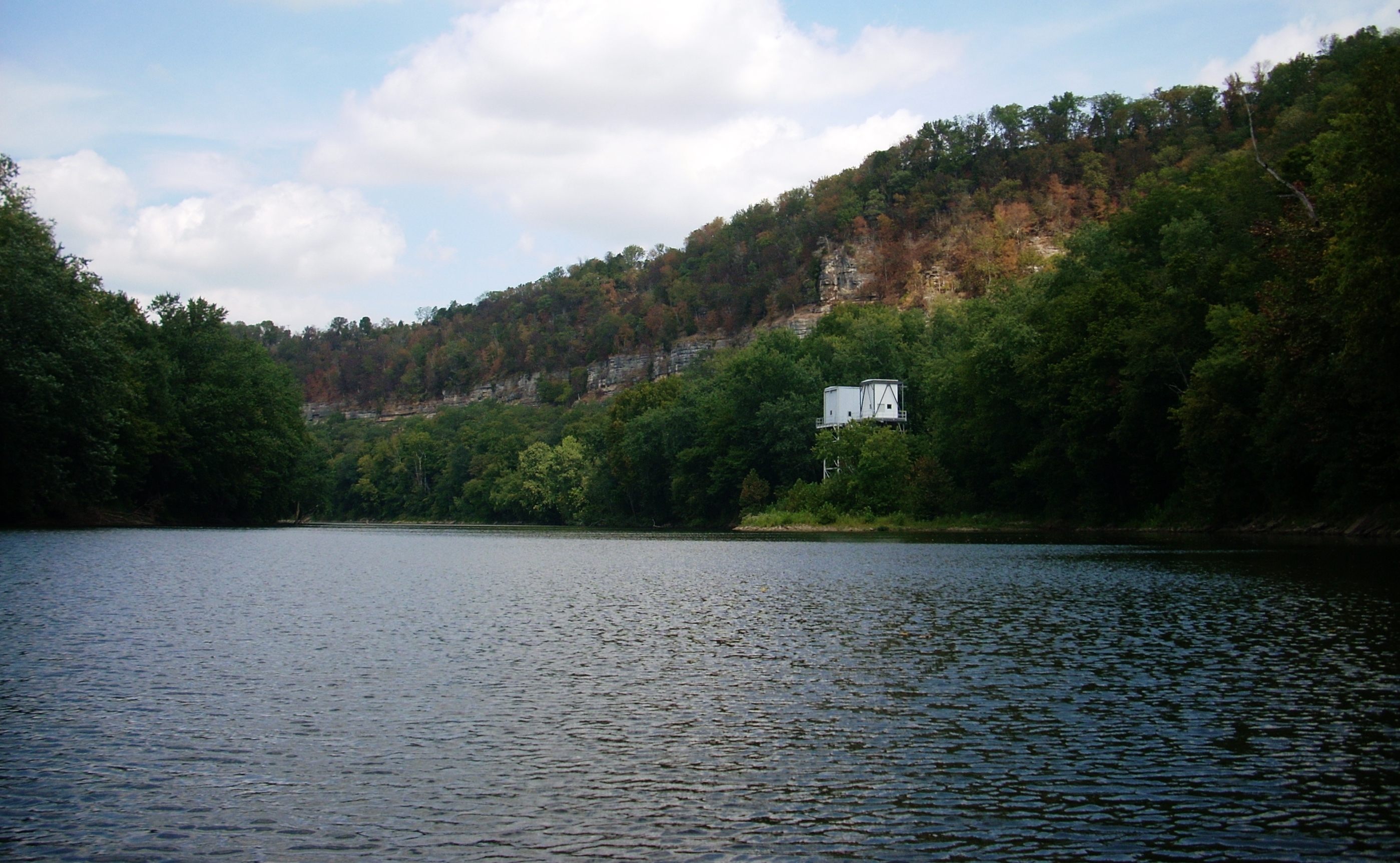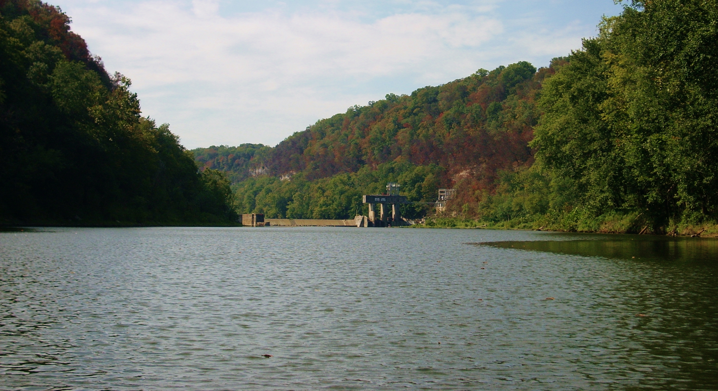 back downriver from the dam this palisade began to recede a little bit to let in