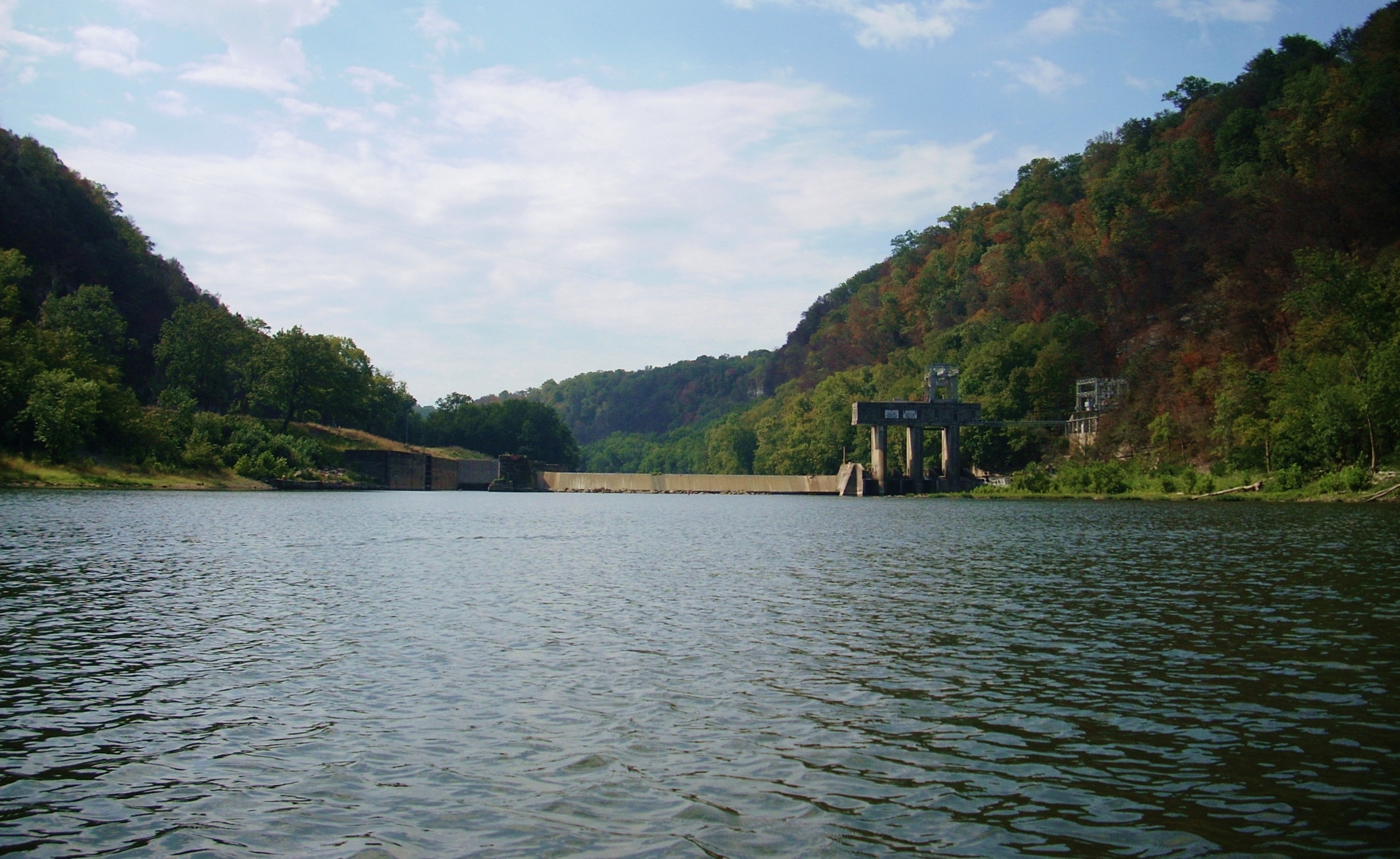 Roughly a mile down from the dam on the right