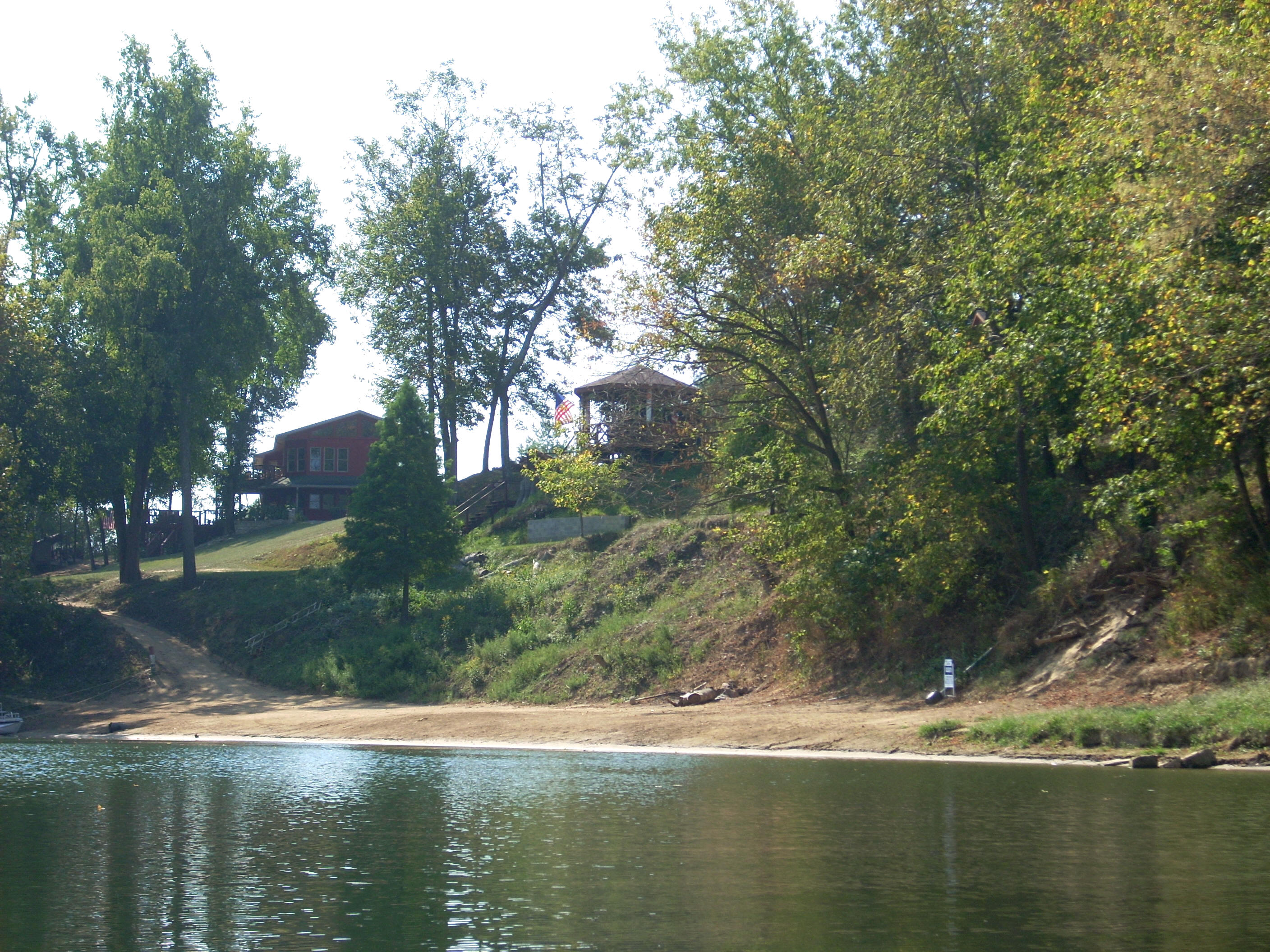 Once you’ve gone around it, the Bear Branch will enter (dry today) at a shoal on your right. There was another paved ramp here – private I think for Shore Acres - while there will be a little beach on the left. Though small, this beach looks to be the only maintained one since