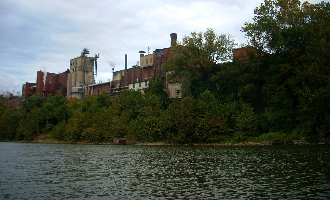Meanwhile, wafting over the river all this time had been the smell of fermentation along with the hum of machinery. The source? The Buffalo Trace Distillery! It’ll slowly emerge more clearly into view with each downriver paddle stroke. This place is amazing to me! It’s an incredible amalgamation of different building materials and architectural styles from different eras. In fact, it looks like they’ve added buildings on top of (and alongside) each other as the distillery has grown. There are also several pipes from which steam was emanating from this eclectic structure. It’s something that begs to be seen! I'd definitely put up their link, but I don't think I'm allowed to do that for distilleries and casinos. You can't tell it from this perspective, but the grounds of this distillery are really beautiful. I actually went to a wedding that was held on the grounds.