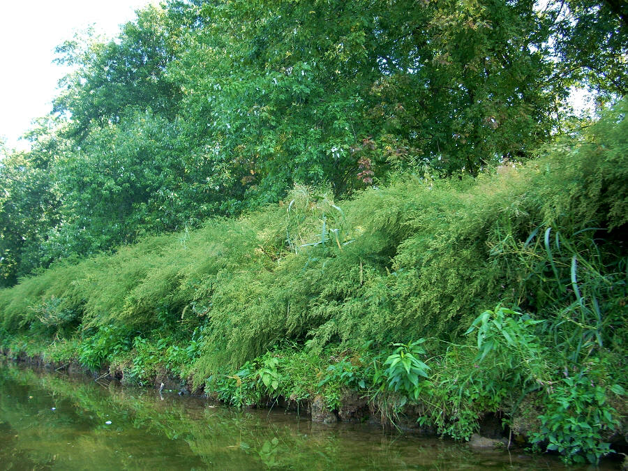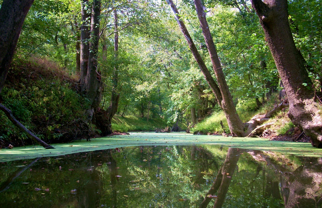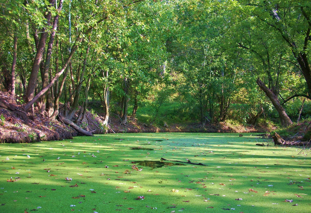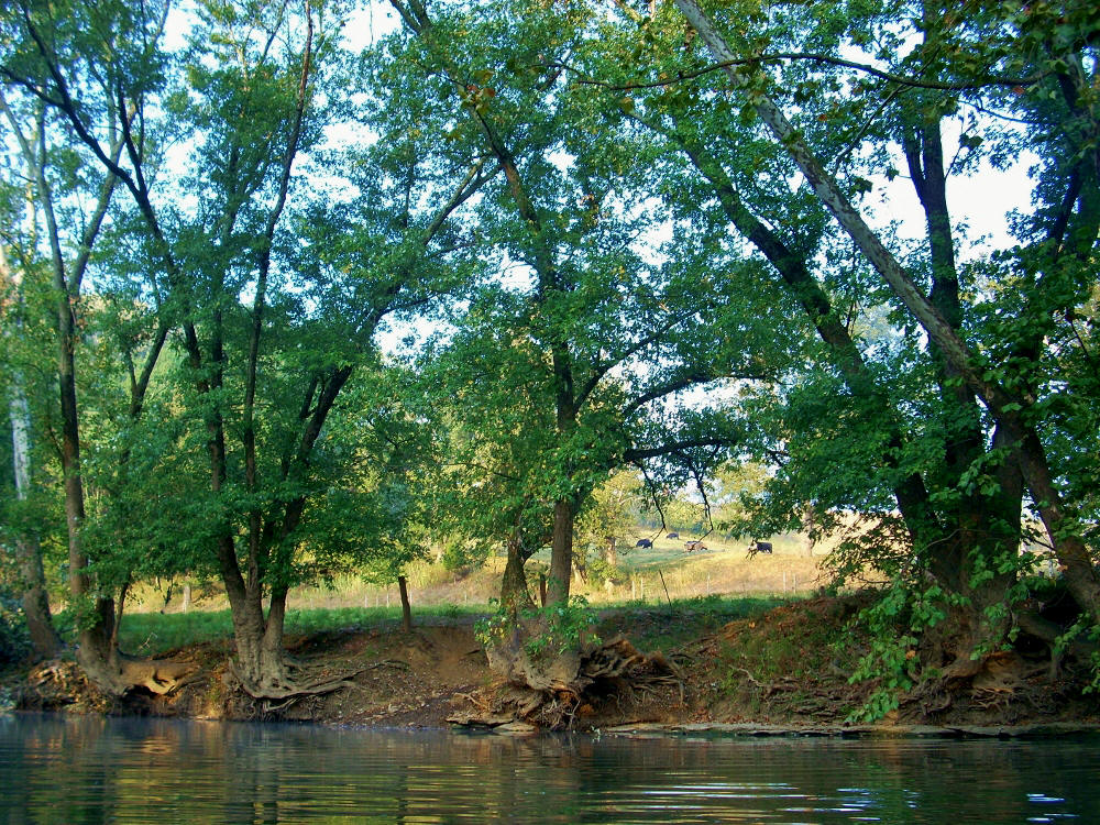 After mile 47 you’ve got another slide shape if you turn the page on the charts and face it in the direction you’re heading. You’ll be moving up the ladder for the next mile and a half. Then you'll be going down a bumpy slide for the next 3 (miles 45-43). Sand Ripple Creek enters at the top of the slide and I spotted some horses and cows mingling among the shade trees on the bank here. I was able to paddle in ¼ mile, encountering more of the green alphabet soup at the end. Meanwhile, Sand Ripple Bar lies on the opposite side and it looked very much like an overgrown herb garden with many varieties of plants. It was interesting to smell the many aromas.