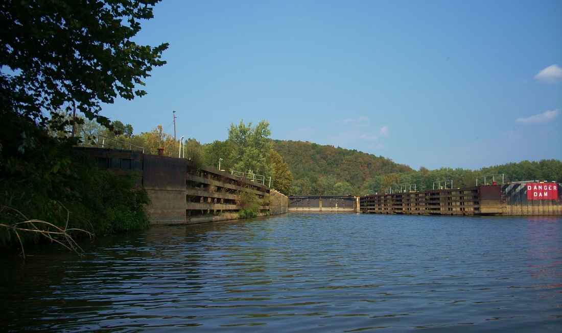 Then, once at the corner of the lock, I saw that the only real impediment to a portage would be some weeds along the muddy bank. It wasn’t a bad climb, and I was really tempted to try it so I set one foot outside the kayak... Then, when it sank what seemed like a foot deep in the muck I decided to pass. :) I hope to check out the area more thoroughly the next time when I approach from the downriver side. There might be a lock house up there... So far the best preserved locations I've seen - and the ones where you can still see both lock houses - are at dam 10 in Boonesbourough. That's where the Kentucky River Museum is and those houses have been totally restored. The ones at dam 12 in Irvine are nice too, but they're in need of some TLC.