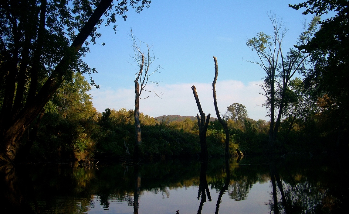 hen I finally got on the water at 9:30 I didn’t think it would be possible to return before dark, and that feeling seemed to be confirmed when Six Mile Creek proved to be the longest navigable side stream in terms of flat water so far (with the possible exception of the Red River which I didn’t fully explore). This was OK since I'd brought my headlamp, but what I’d forgotten was the sponge I use to bail out my boat. I'd also lose another towel today. Aargh.