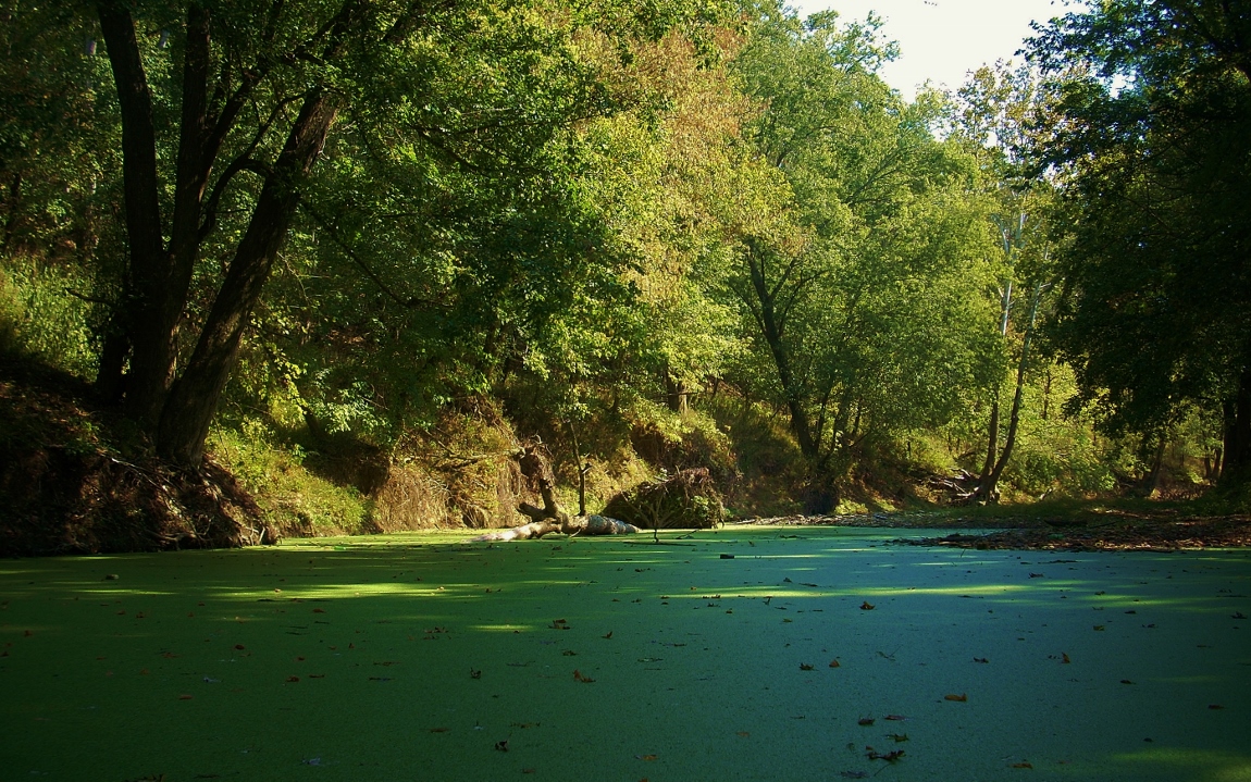 The last part of the trip was a slow right curve all the way down to Lock and Dam 2 at mile 31. As mentioned before, Six Mile Creek enters immediately before and I got in more than a mile. Whilst doing so, I noticed a mailbox lying on the right bank a little way in. Seems someone was up to some mailbox pranks. If anyone in the vicinity of Lockport is looking for their box (#421), it’s back here and it still looks to be in good shape. I caught a glimpse of an otter at the end of this stream. It quickly peered over a downed tree at me before performing a vanishing act. Below is a scene from the stream...