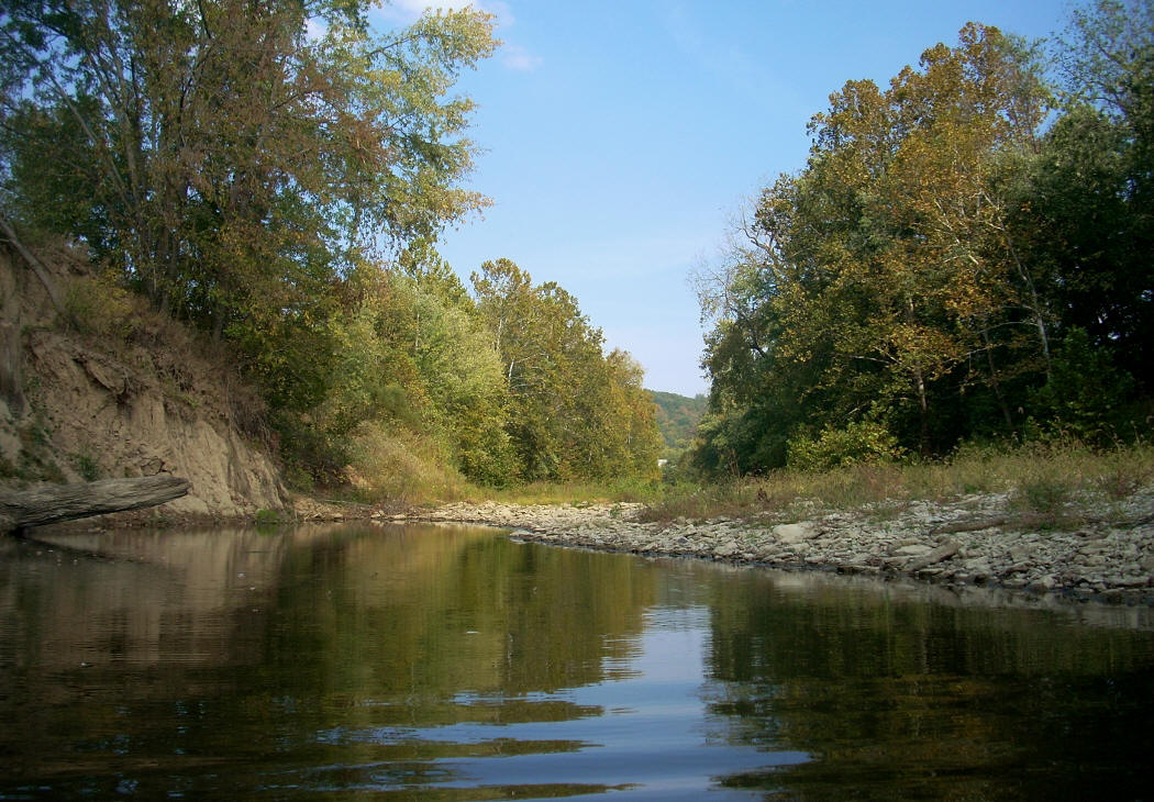 In this stretch the shorelines consist of farmland on both sides, but