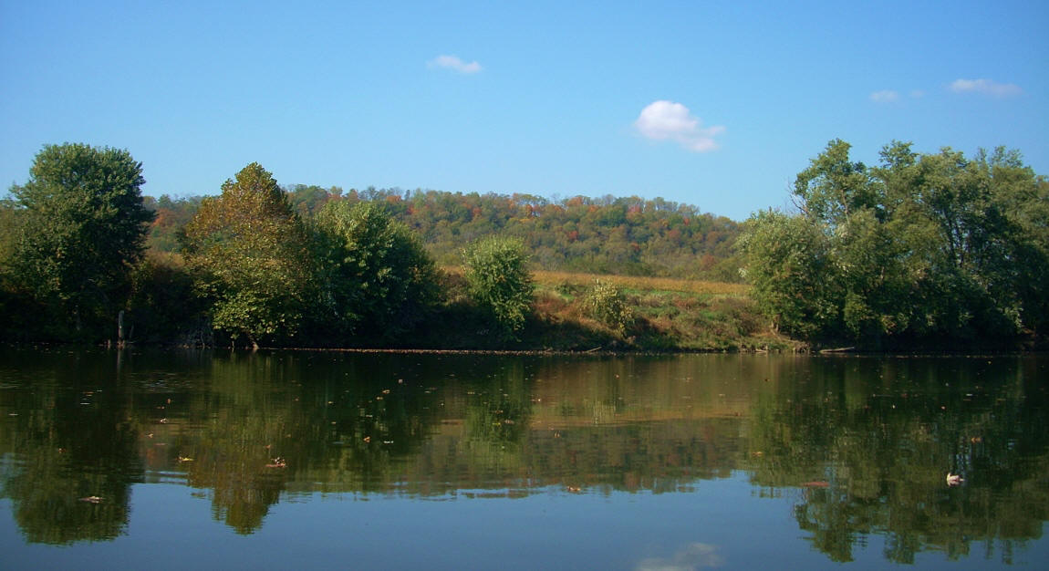 Once you emerge from Eagle Creek you'll find a spot on the right side (across from the muddy bank where I put in) where the navigation charts indicate indicate that a state inspection station used to be - circa 1802! I didn’t see any remaining evidence it, however. As for the Kentucky River itself, you're in a fairly wide open spot here with farmland views through the trees on the left.