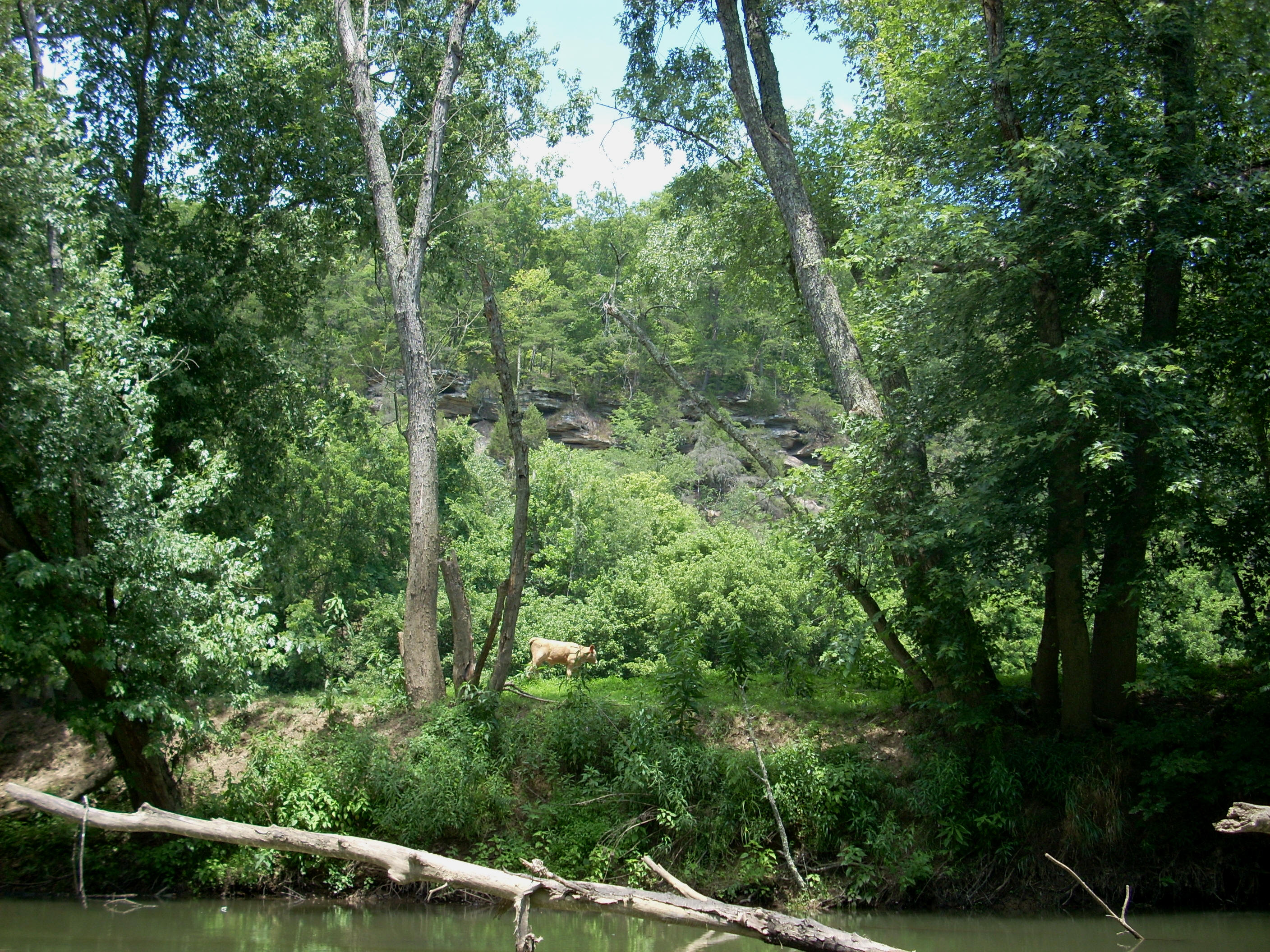 It was upon reaching a right curve near the end of mile one that I met with my first sight of cattle near the river. The first was actually a bull which seemed to take no notice of me as it walked on along. There were also quite a few cows in front of it and they likewise moved away in the direction the bull was going – upriver and away from the shoreline.