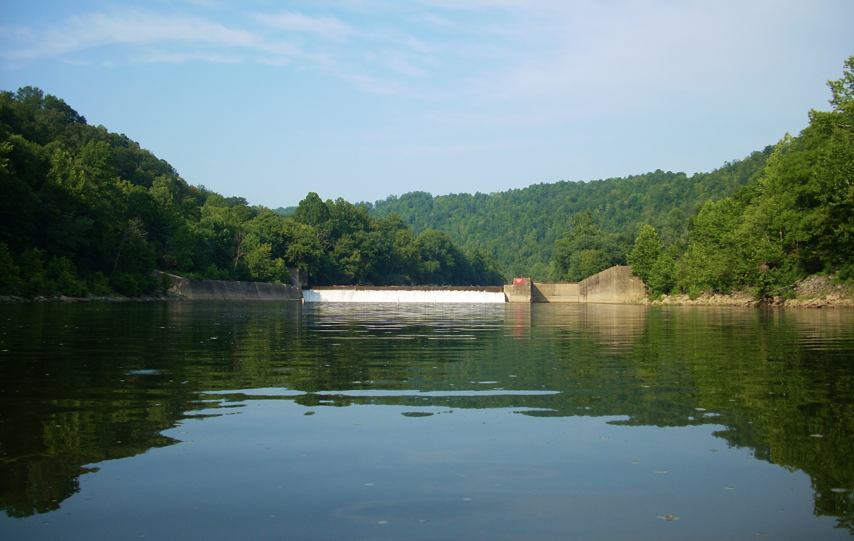 Anyway, as I was bringing my stuff down (this is a long ramp by the way – maybe 100 yards) I noticed a couple guys down there with a little dog. This dog did not know what to make of me at all. It ran all around, barking. Well, I’ve been bitten by a dog displaying the same kind of behavior before, so I was none too comfortable with this situation. I did have my can of Halt! pepper spray on me but I was loathe to use it. “He hasn’t bitten anybody yet.” Not entirely reassuring... I got my stuff together and got out of there! Strange thing though (cue eerie music). They and their boat were gone when I paddled back from the dam which was only a short distance away. They didn't pass me. The truck was gone as well and I would have heard it leaving. Heck, the dog would have been barking at me too! Altogether a very strange disappearing act.