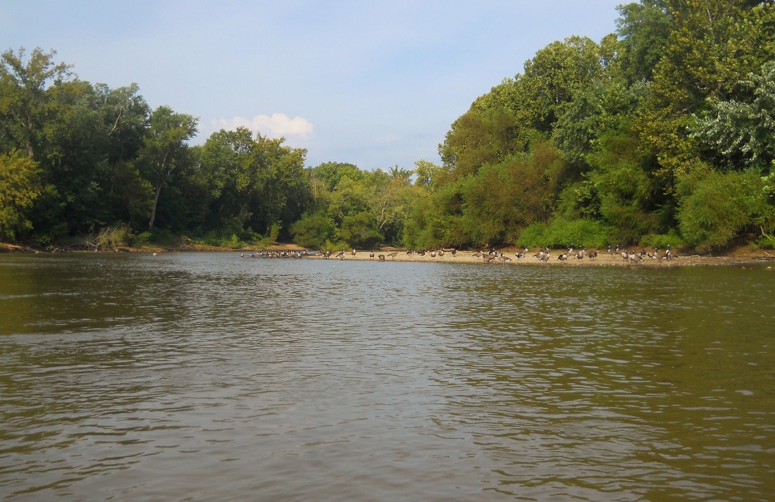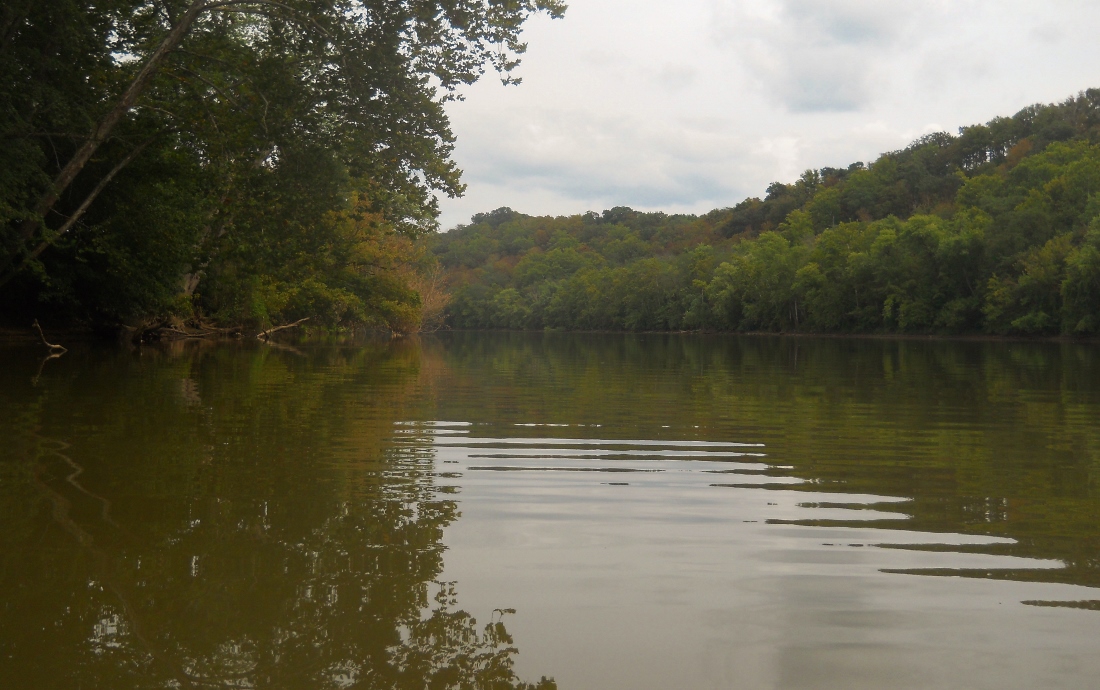 On down the river... This is a really nice, peaceful section and there's beautiful farmland all around you for most of it even if you can't completely see it up on the bank. This is one of those sections that if you've got some heavy things to sort out it can be a very contemplative place from which to do so. That's how I started out kayaking and hiking. I had issues that couldn't be resolved and that created an enormous amount of energy that somehow needed to be expended. Only taking long trips did so for me.