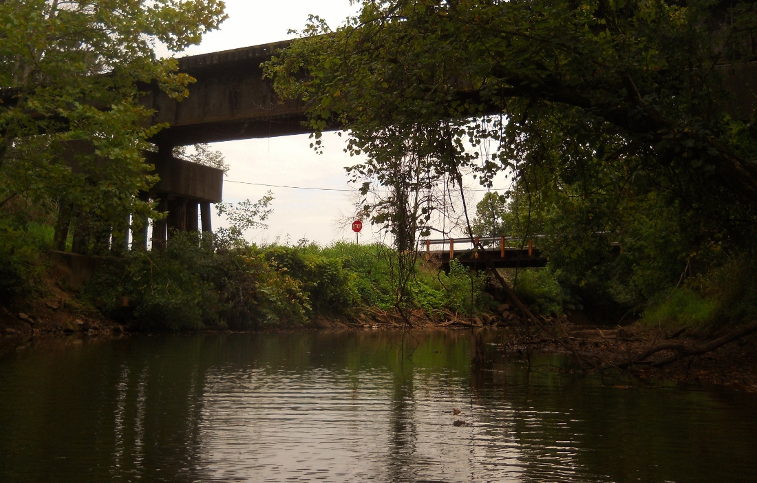 Once you finally see a left curve ahead of you you'll be nearing the dam outside of Devola, but just prior to it on your right you'll notice that Rainbow Creek enters. This stream was navigable, although I didn't get too far past a couple bridges before I met a deadfall blockage. I thought the concrete support system on the rail bridge, in particular, was interesting.