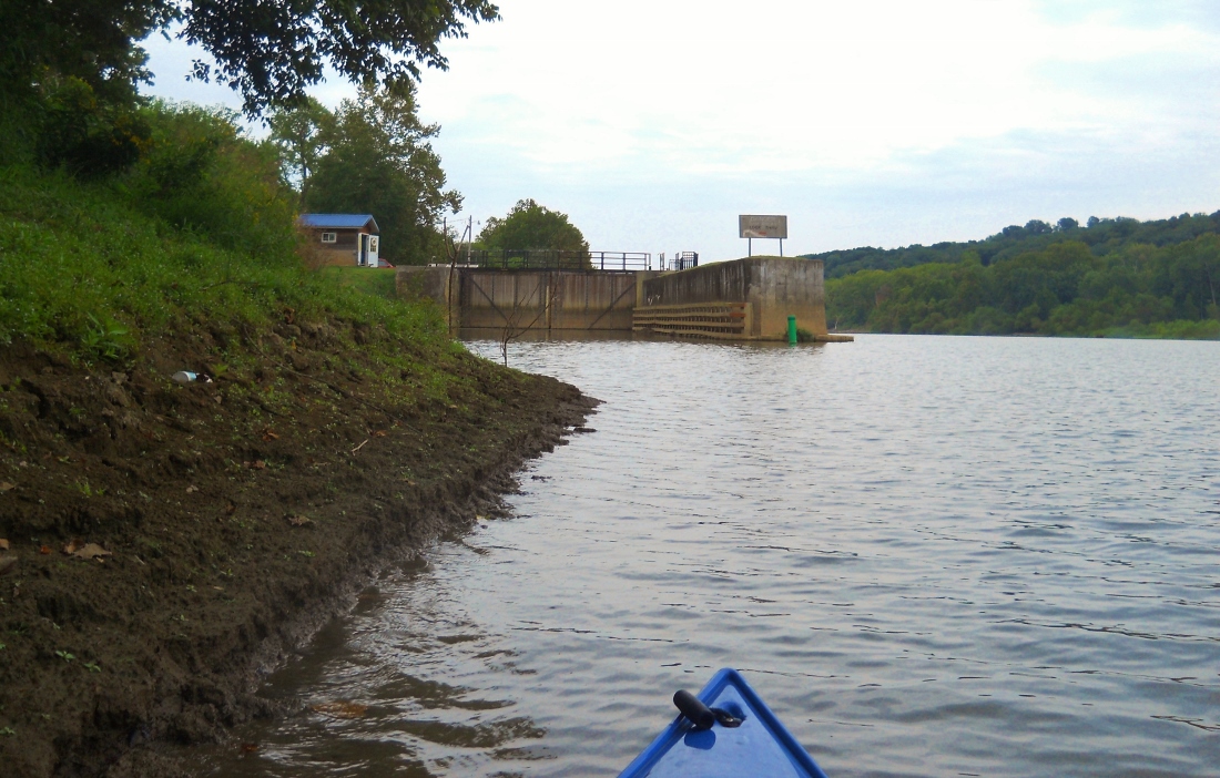I generally prefer putting in at a ramp myself, but as you look at the bank in the photo above, I suppose that you could put in here if it's OK with lockmaster. I'm not sure if he saw me today, but you can see he was up there somewhere - note the open door. This facility is pretty popular as it's a great fishing spot - especially on the other, downriver side. It's also an easy drive from Marietta and anyone in Devola could walk here as well. It was a this point that I headed back. Below are some perspectives. The lockmaster was gone at my origin when I got back. I think they get off at 5.
