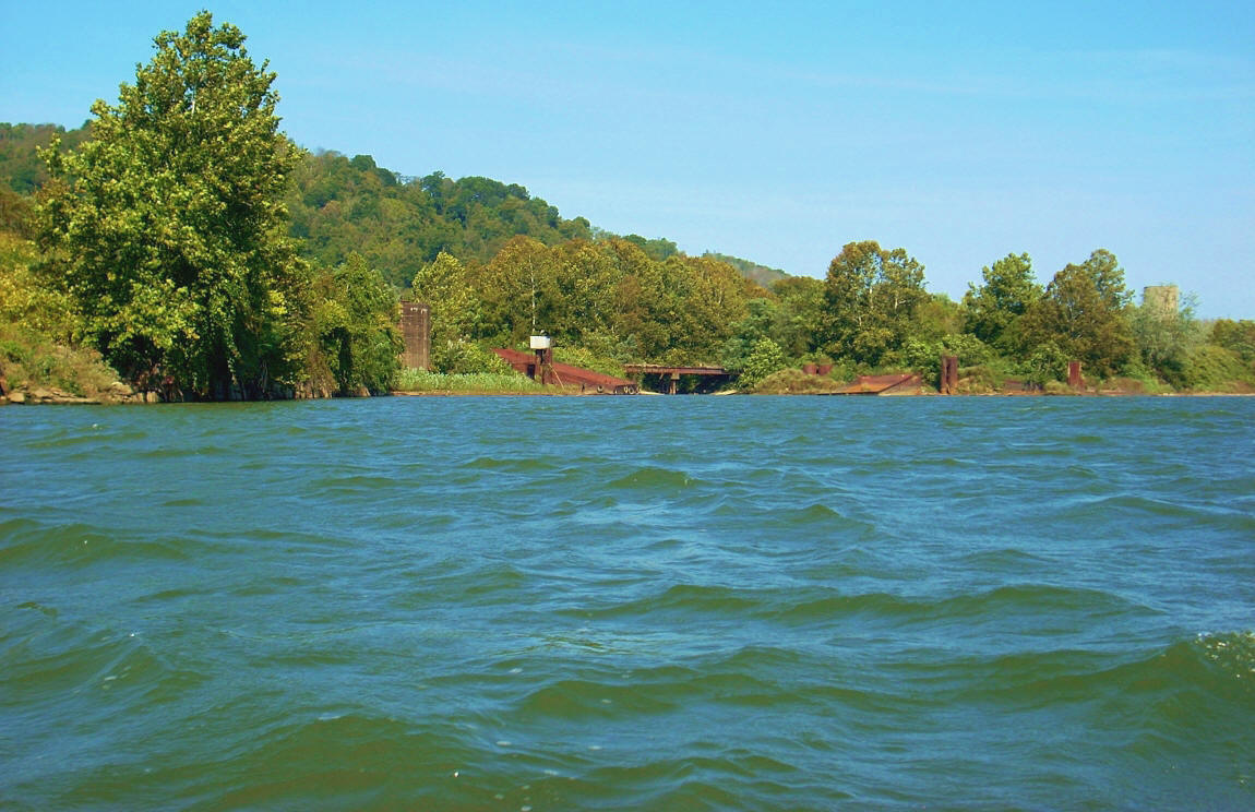 Following this, and still on the same side in Ohio, you'll see a ton of old equipment along the shoreline. I'm always fascinated when I see abandoned stuff like this, but seldom do you see so much. It extends for roughly 1/2 mile all the way up to the point where a ton of old, rusting barges litter the downriver tip of Boggs Island at mile 93.5. More on the island in a sec, but I'm having a hard time telling what business this used to be. The charts indicate that Rayle Coal used to operate here, but so did Ohio River Salvage. If someone could enlighten me I'd appreciate it. My email is on my "About Me" page.